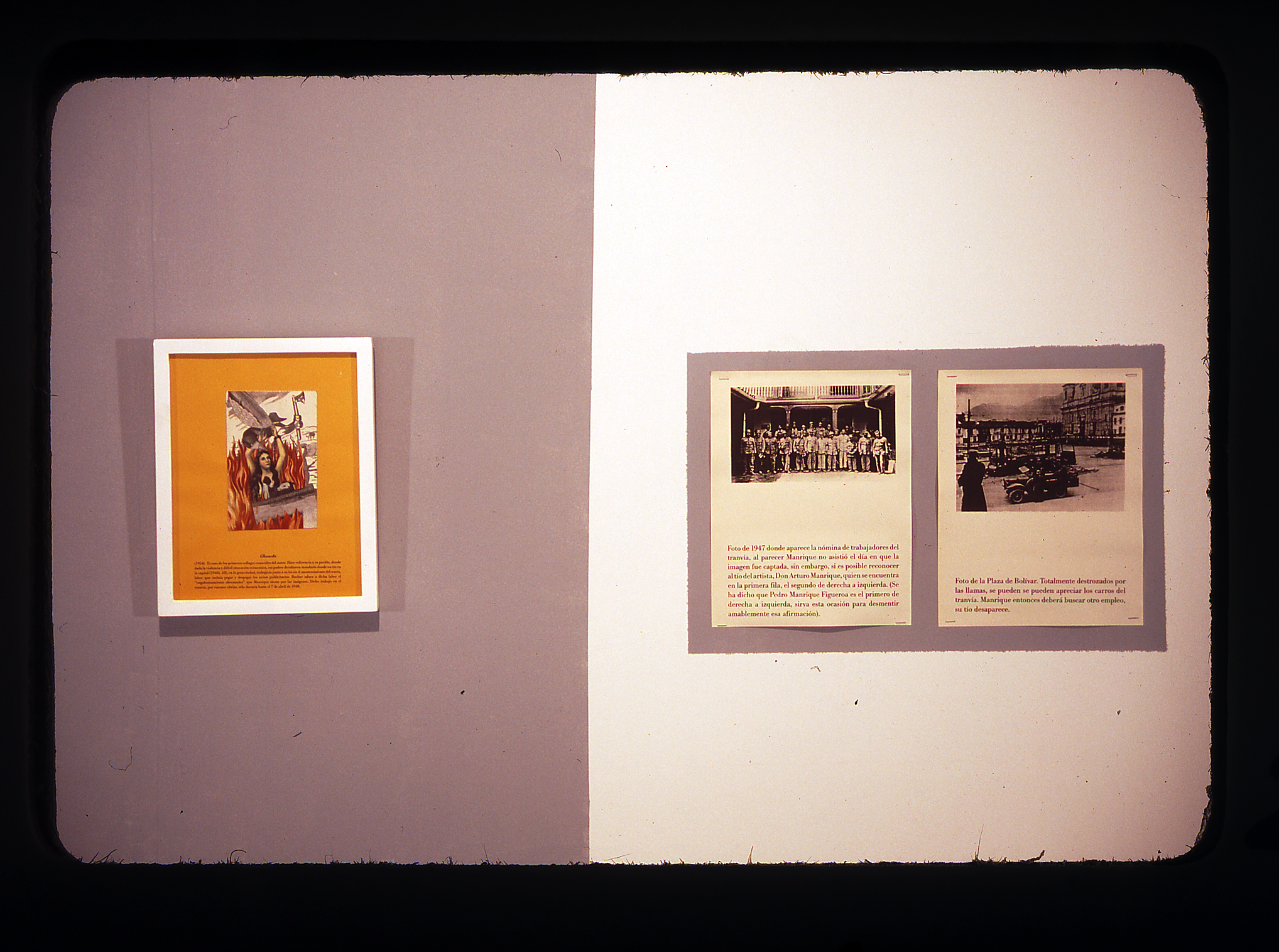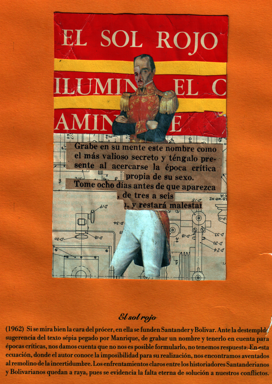 Es uno de los primeros collages conocidos del autor. Hace referencia a su pueblo, donde dada la violencia y difícil situación económica, sus padres decidieron mandarlo donde un tío en la capital (1946). Allí, en la gran ciudad, trabajaría junto a su tío en el mantenimiento del tranvía, labor que incluía pegar y despegar los avisos publicitarios. Francois Bucher aduce a dicha labor el “engolosinamiento abrumador” que Manrique siente por las imágenes. Dicho trabajo en el tranvía, por obvias razones, sólo duraría hasta el 9 de abril de 1948.