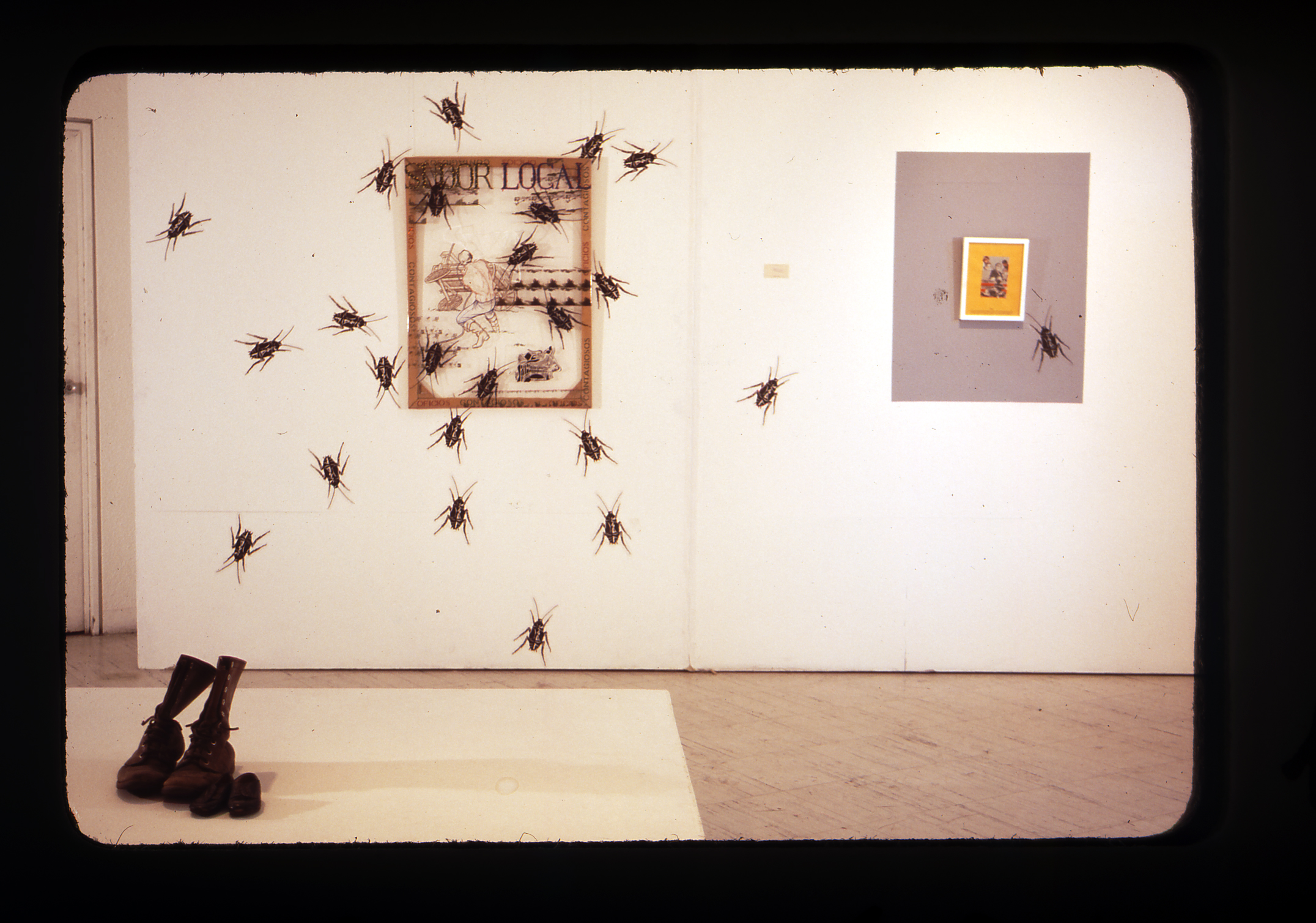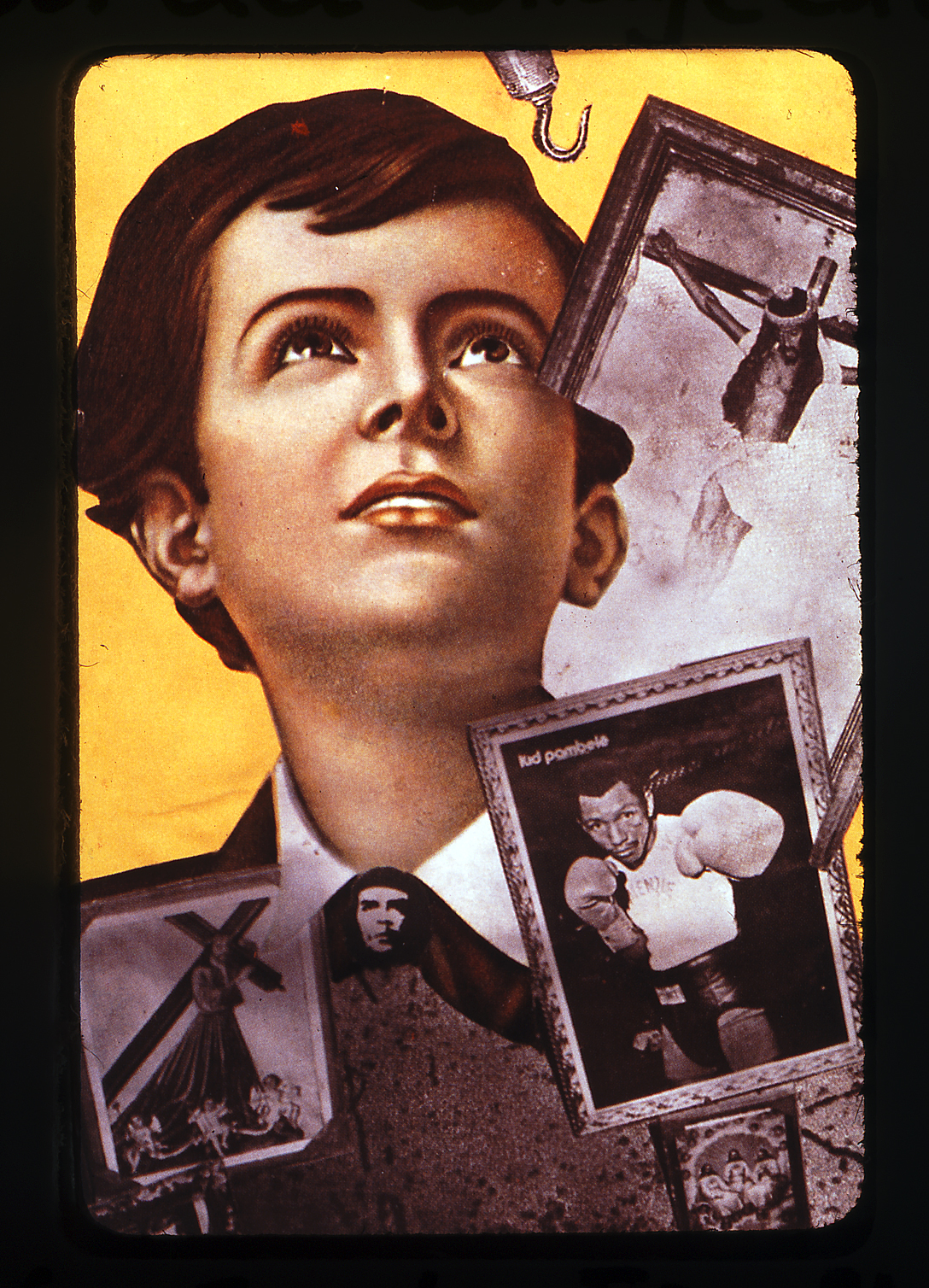 Hubo una época en Colombia donde todo buen zapatero debía tener bajo el colchón un ejemplar de alguna de las obras del pensador alemán Federico Nietzsche. Manrique toma la frase del “eterno retorno” y la hace confluir en esta imagen de la juventud donde los iconos de todas las revoluciones se encuentran. “Pambelé no noquea a Cristo ¡Carajo!”, frase de Manuel Hernández en un libro reaccionario sobre Manrique publicado por Bibliográficas Rodríguez y Peña.