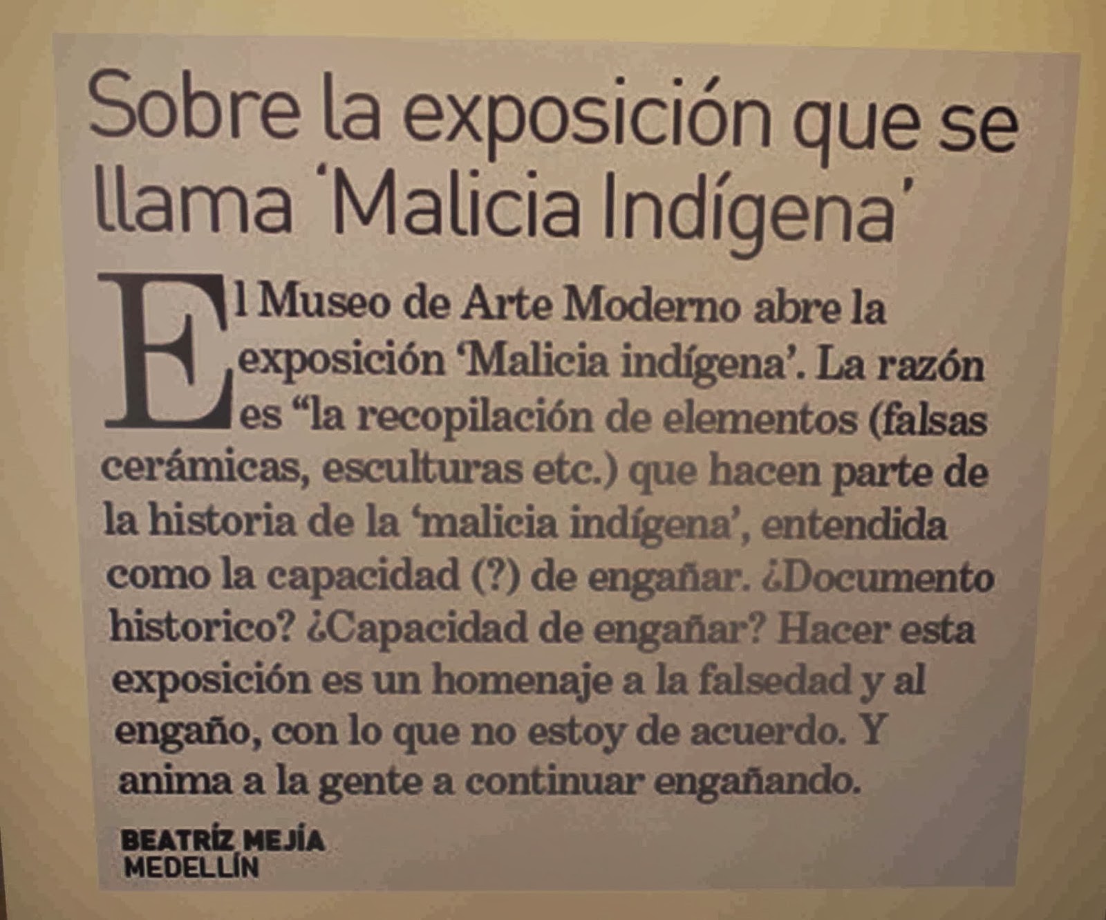 This exhibition, entitled ‘Malicia Indigena,’ was held recently in Los Andes University’s Santo Domingo exhibition hall, on Jimenez Ave.