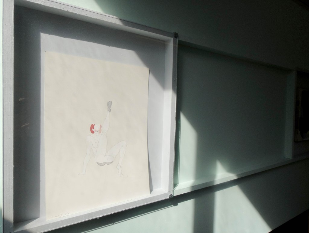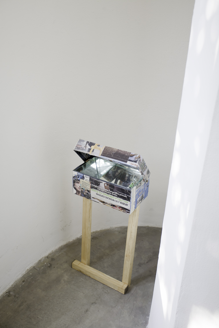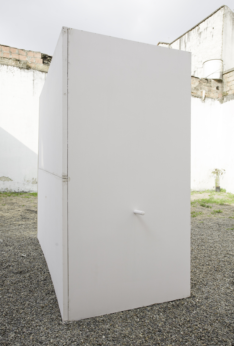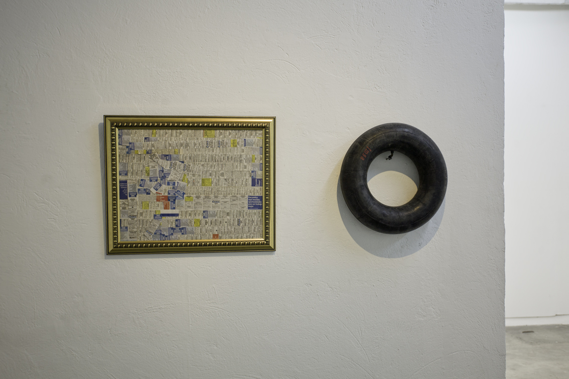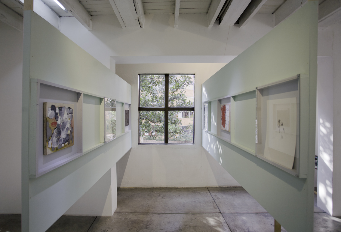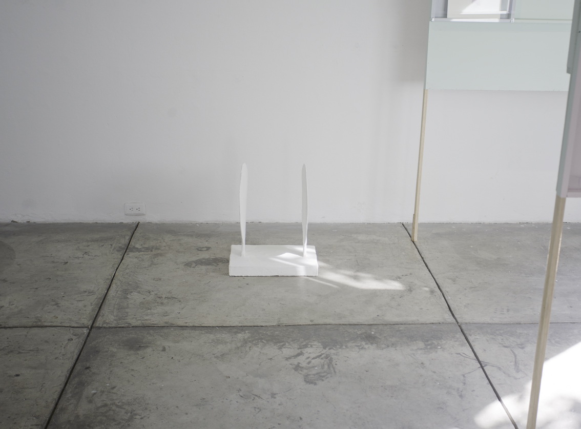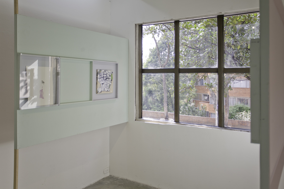 Each floor of the gallery was divided into two parts with a slashing chalk line. The north side went to Lina González. The south side for Lucas Ospina. At the time of assembly, each artist brought a series of pieces (drawings, paintings, sculptures and collage) that they mounted in their space. The name of the exhibition —Esta es la nostra (cosa)—was taken from a graffiti made on one of the gallery doors in the eighties, possibly a comment on one of the uses of the building at that time: the sale of illegal drugs.