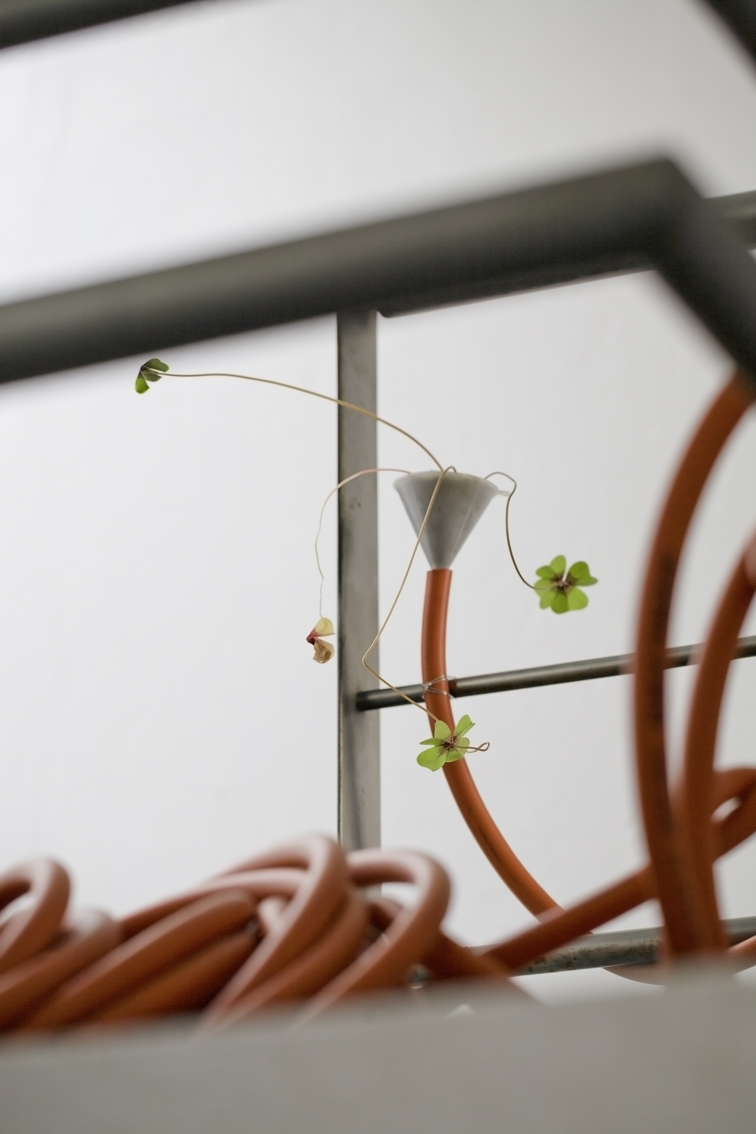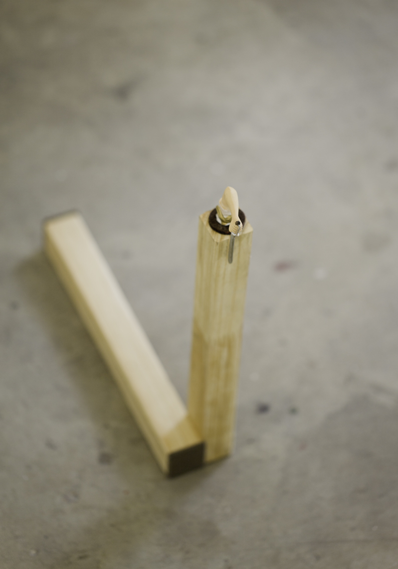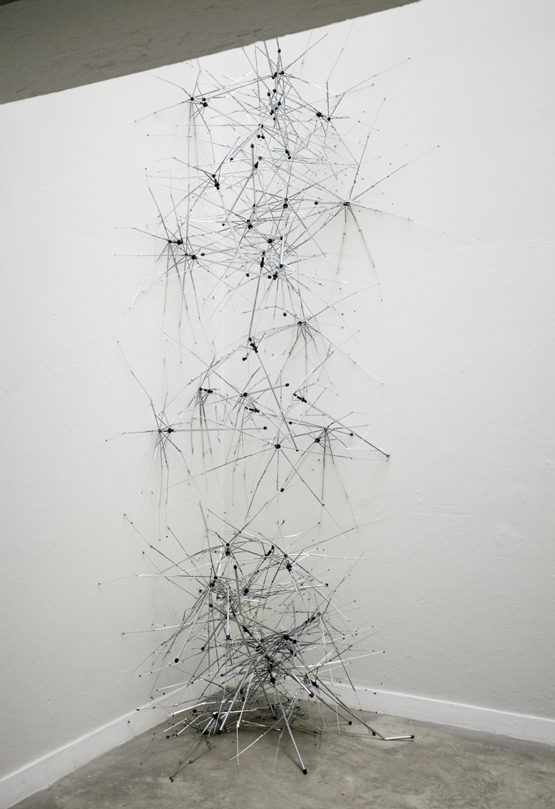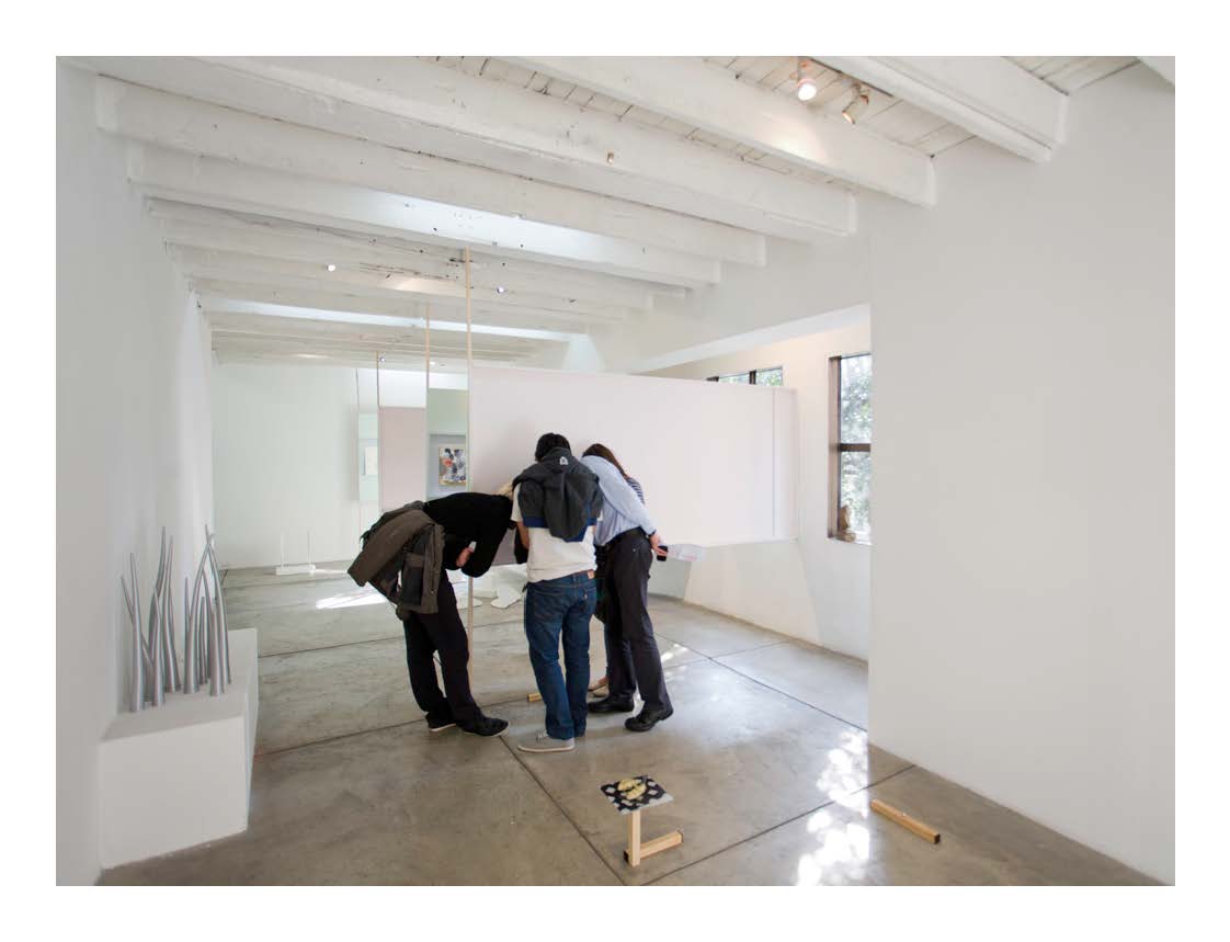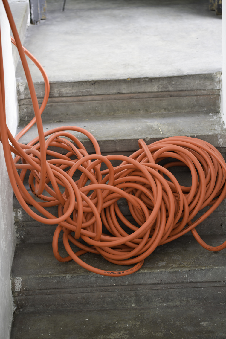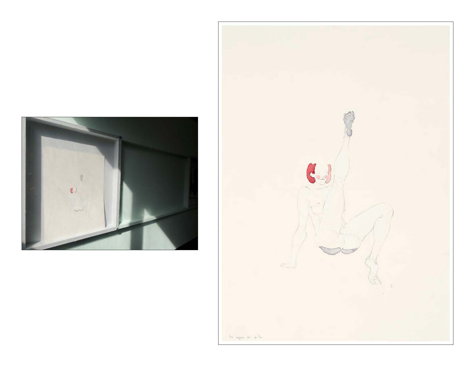 Each floor of the gallery was divided into two parts with a slashing chalk line. The north side went to Lina González. The south side for Lucas Ospina. At the time of assembly, each artist brought a series of pieces (drawings, paintings, sculptures and collage) that they mounted in their space. The name of the exhibition —Esta es la nostra (cosa)—was taken from a graffiti made on one of the gallery doors in the eighties, possibly a comment on one of the uses of the building at that time: the sale of illegal drugs.