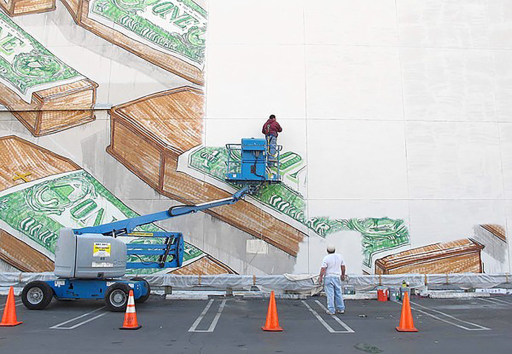 Un caso similar sucedió el año pasado en el Museo de Arte Contemporáneo de Los Angeles donde el galerista que dirige esa institución organizó la exposición Art in the streets. El ojo de la curaduría se cruzó con el ojo del coleccionismo y le dio la mirada museal de la Medusa al arte callejero, una ojeada bizca que cruzó historia con mercadeo y condimentó la nostalgia del pasado reciente con la actualidad callejera (Bansky incluido). El evento fue un éxito, marcó un record de asistencia, pero una de las piezas que sí estaban en la calle, y que había sido comisionada, fue censurada por la dirección del museo y lavada con pintura blanca al día siguiente de ser terminada: se trataba de un mural del artista Blu que mostraba un panorama de ataúdes cobijados con billetes. La institución museal señaló que la pieza era «inapropiada» y podía herir la sensibilidad de los transeúntes: esta pieza de «art in the streets» no pudo estar en la calle.
