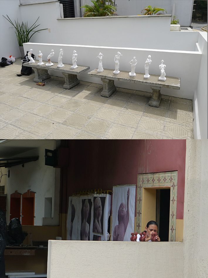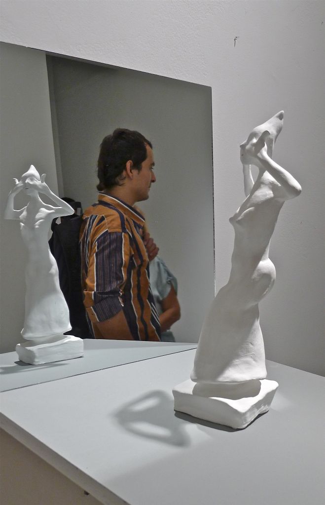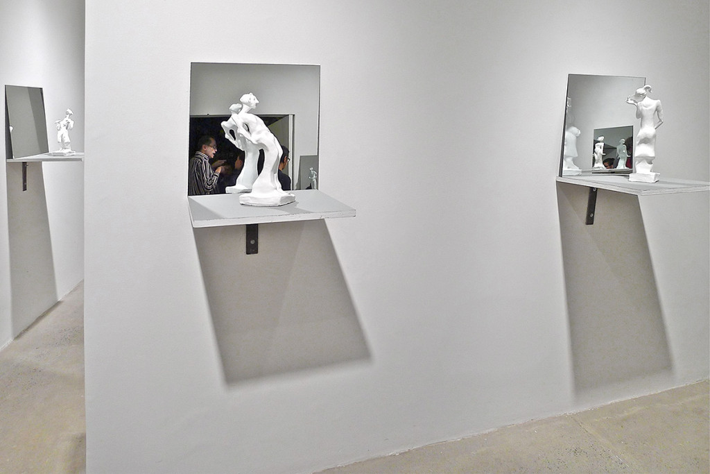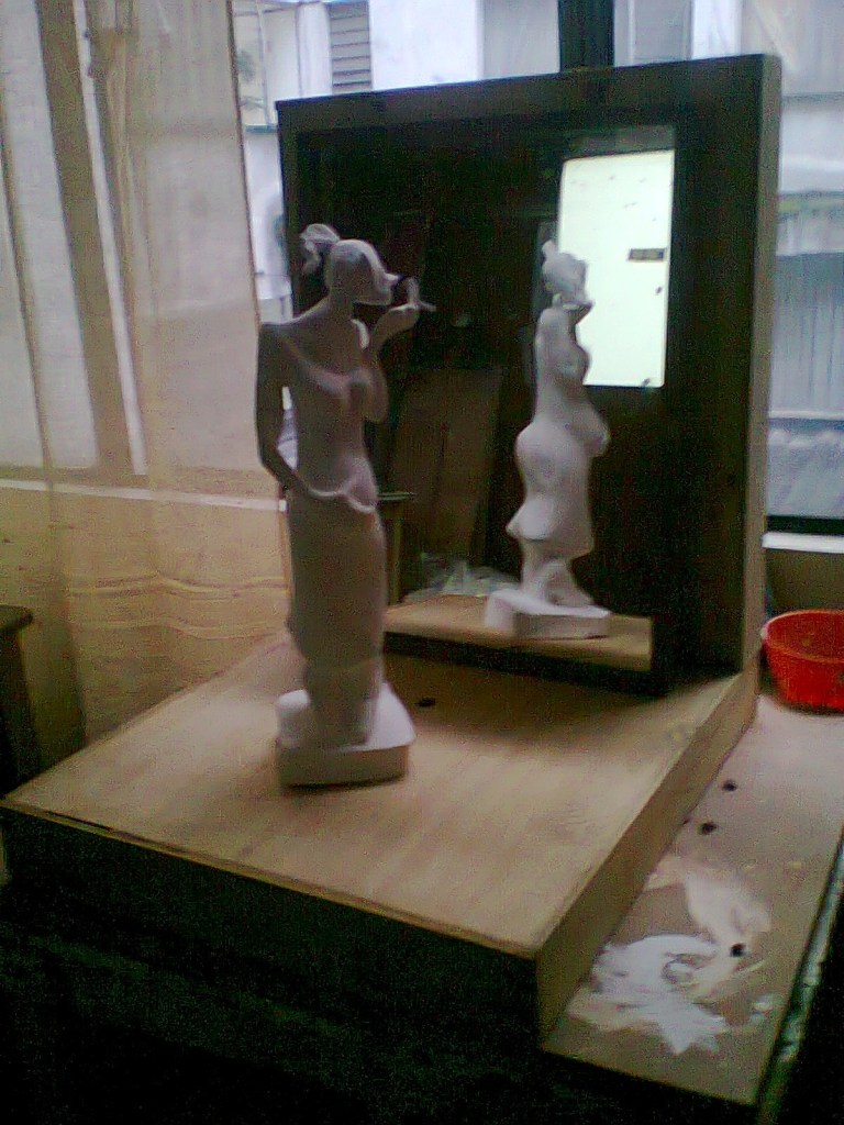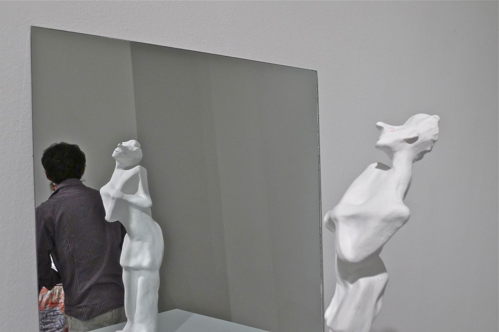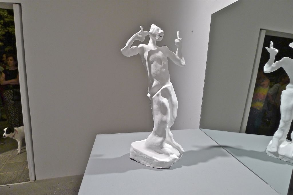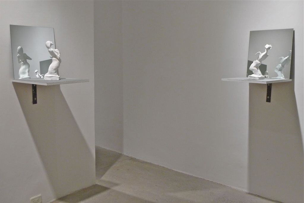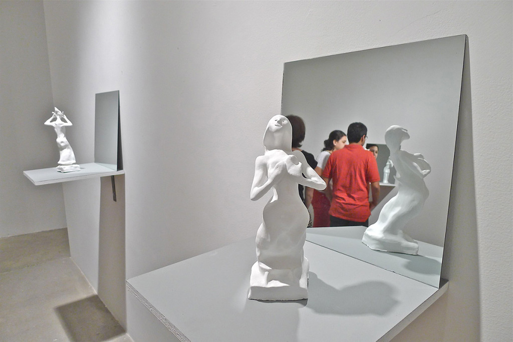8 esculturas, barro, vinilo, espejos, soportes, gente… / 8 sculptures, clay, vinyl, mirrors, stands, people…