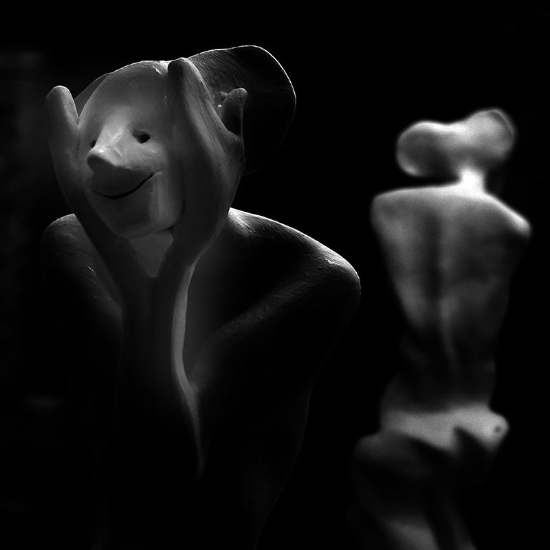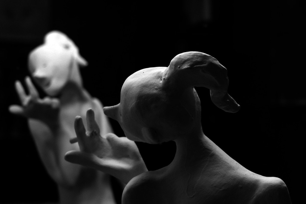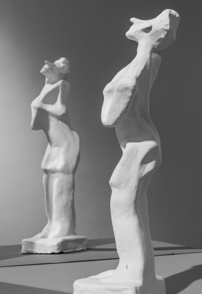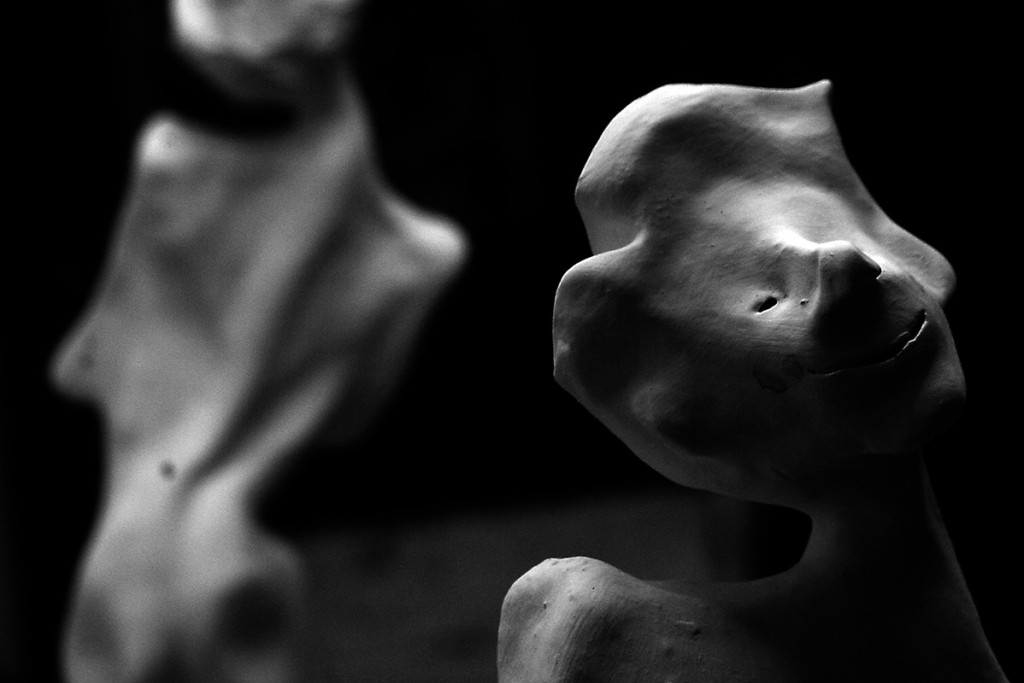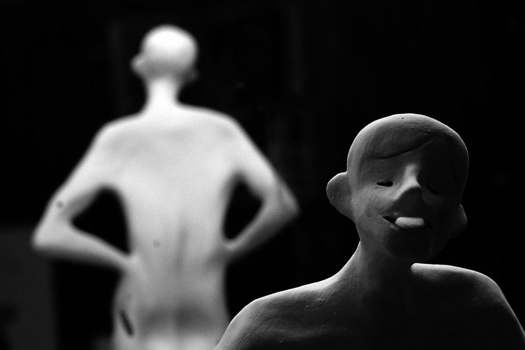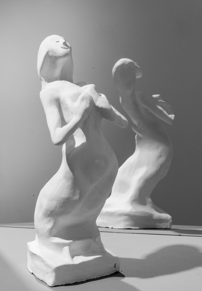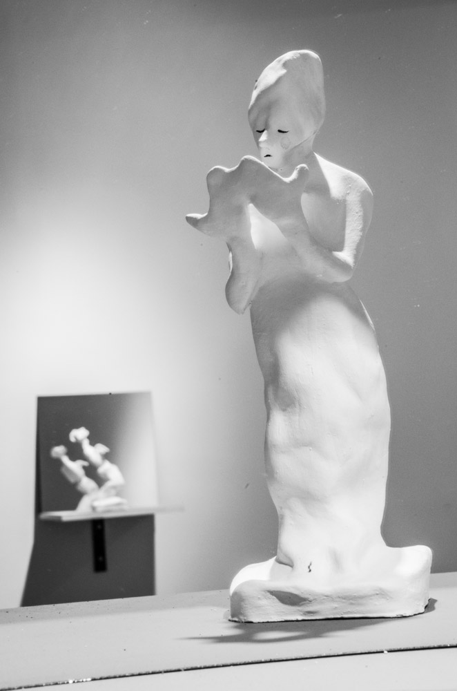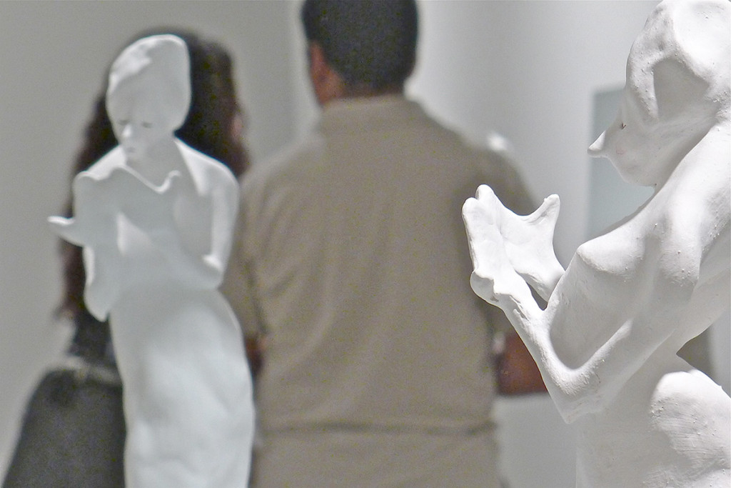 8 esculturas, barro, vinilo, espejos, soportes, gente… / 8 sculptures, clay, vinyl, mirrors, stands, people…