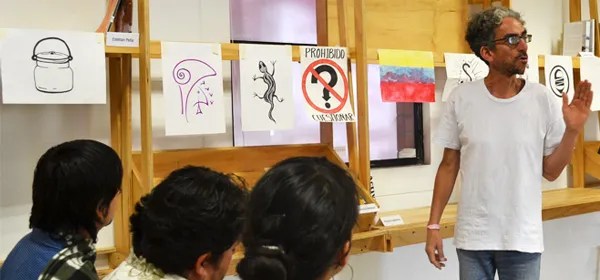 Hay dos aspectos ahí. Uno, el más fácil, es que yo prohíbo el término, el concepto, incluso la palabra “arte” en el taller. Yo hecho el cuento de que voy a poner un recipiente, un vasito y que cada vez que una persona nombre la palabra “arte” o siquiera “artista” tiene que pagar una multa y cuando el vasito esté lleno de dinero con eso vamos a tomar una Coca-Cola o un tinto. Entonces de principio el concepto, la idea o el mundo llamado arte esta proscrito del taller. Primero, como para que no me salga un artista más fuerte que yo y me casque, y segundo porque el arte tiene algo de subjetivo y si le damos solo al “a mi me gusta”, uno como tallerista no puede hacer nada, o dice “a mi también” o se calla y se va. En cambio, si se puede lograr objetividad, por ejemplo, cuando en un ejercicio digo que la cantidad de blanco tiene que ser la misma de negro y si hay una duda se saca una reglita, se mide y ya. En aras de la objetividad se elimina el arte. Yo no soy Platón pero puede ir por ahí la cosa.