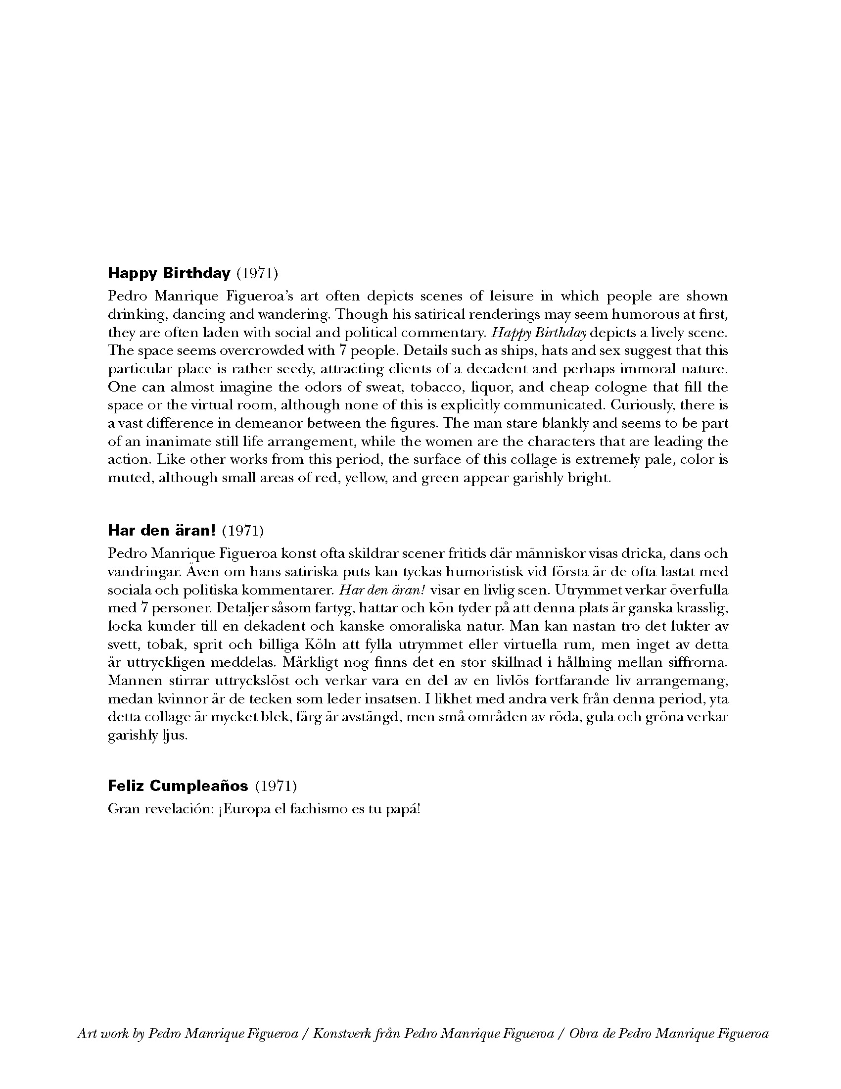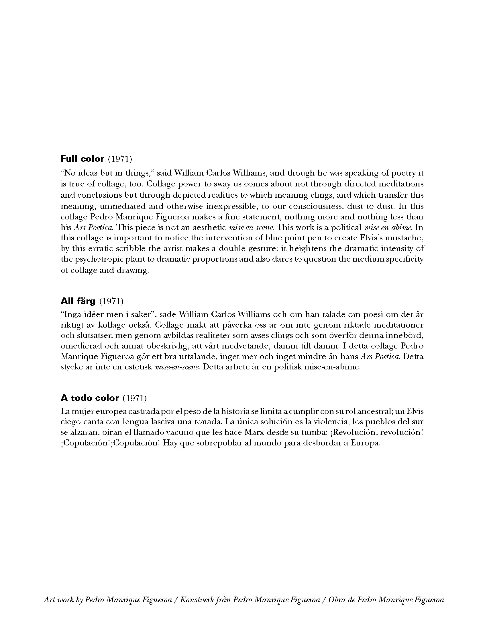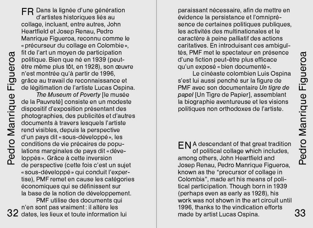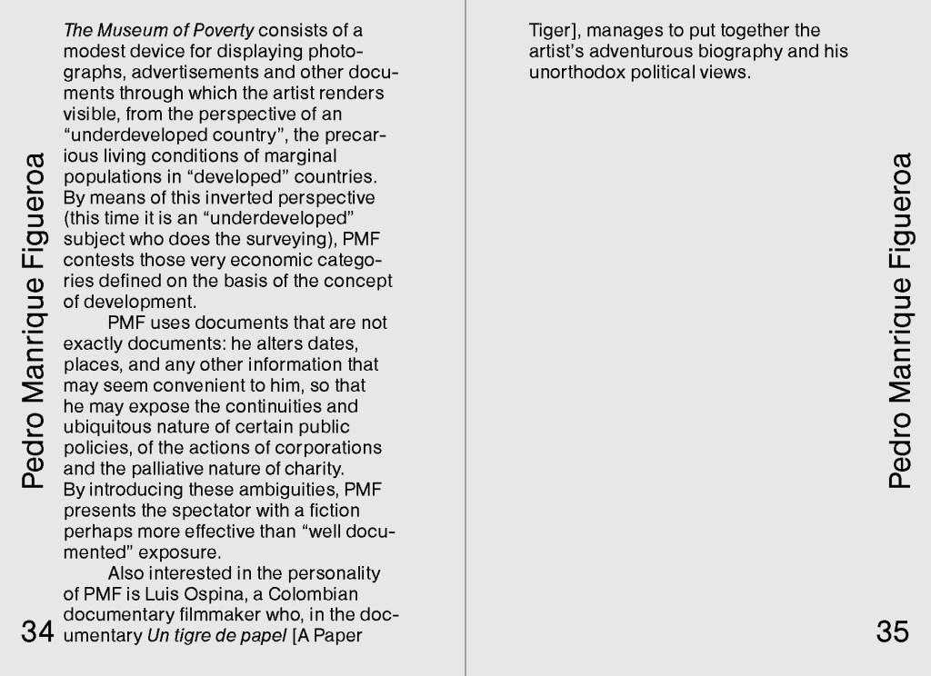 From February 21 to May 15, 2016, Trust In Fiction, a group exhibition with Eleanora Antinova, The Atlas Group, Jack Blevins, Collection Yoon Ja & Paul Devautour, Marcelo do Campo & Marcelo Cidade, René García Atuq, Pedro Manrique Figueroa, Joaquim Nunes de Souza, Naranja M. Q. & Clara S. & Helena L. & Javi L. & le Mendiant, Euclides Terra, Juan Trepadori, and works by Luis Camnitzer, José Guillermo Castillo, Liliana Porter, Luis Ospina, curated by Santiago García Navarro & Elfi Turpin.