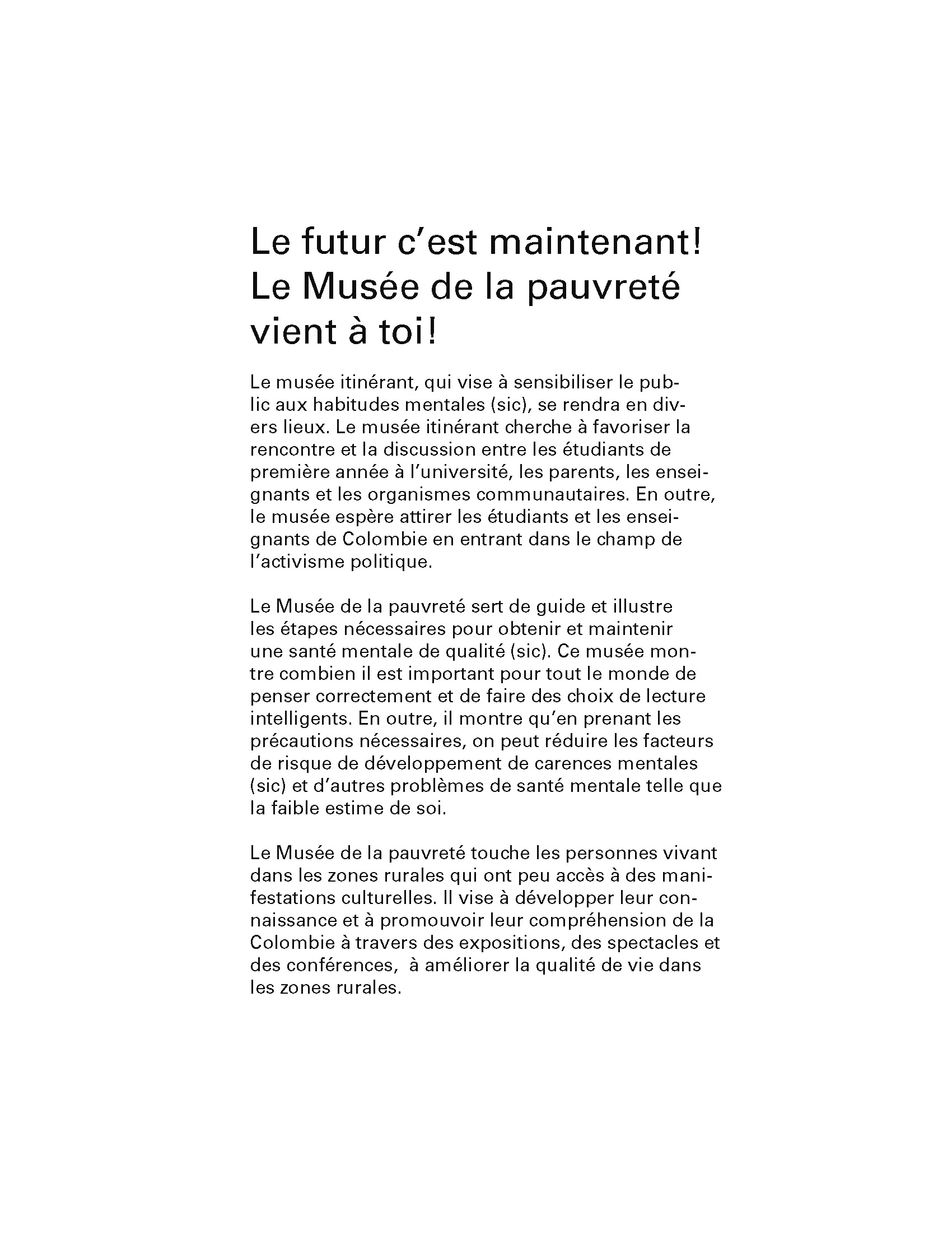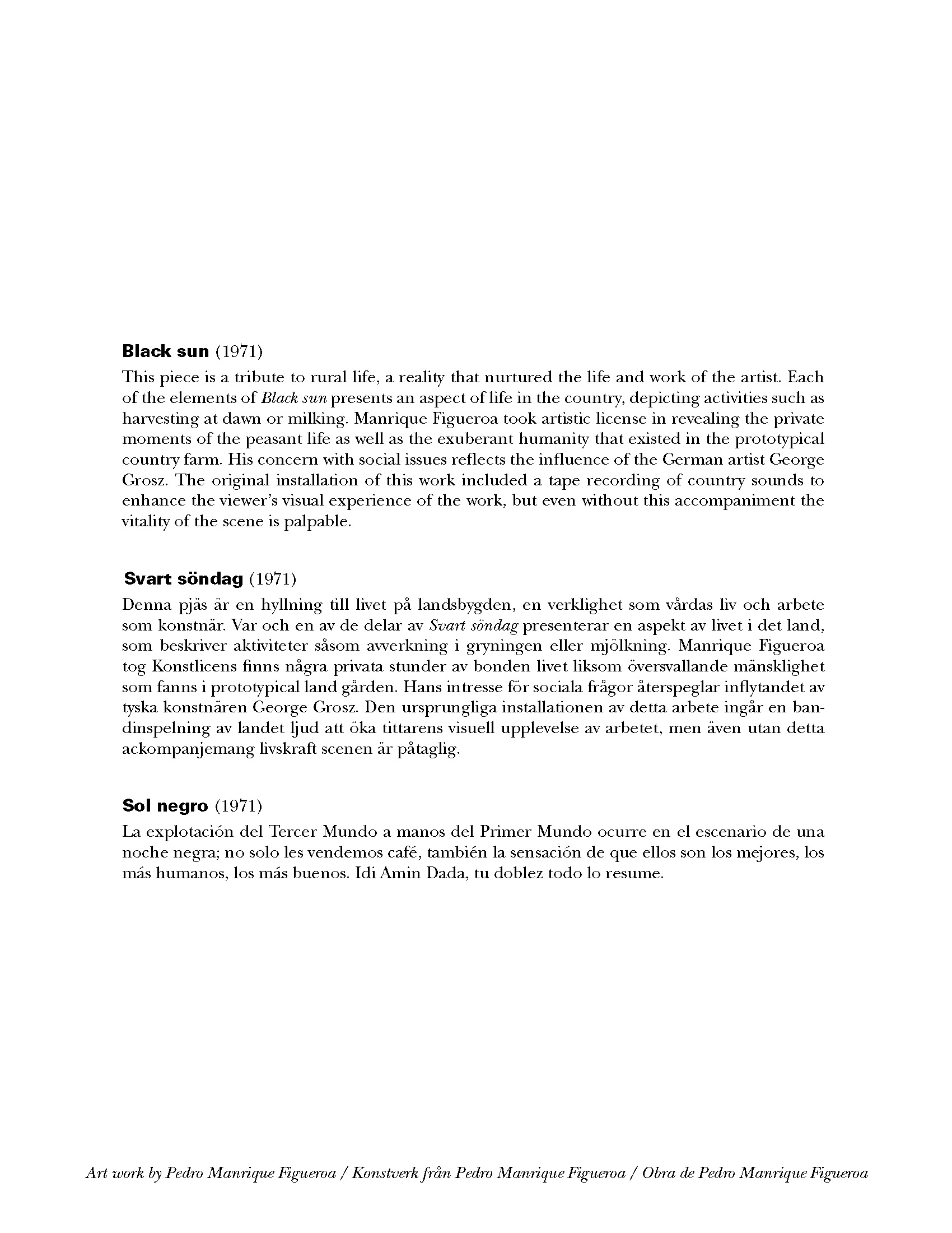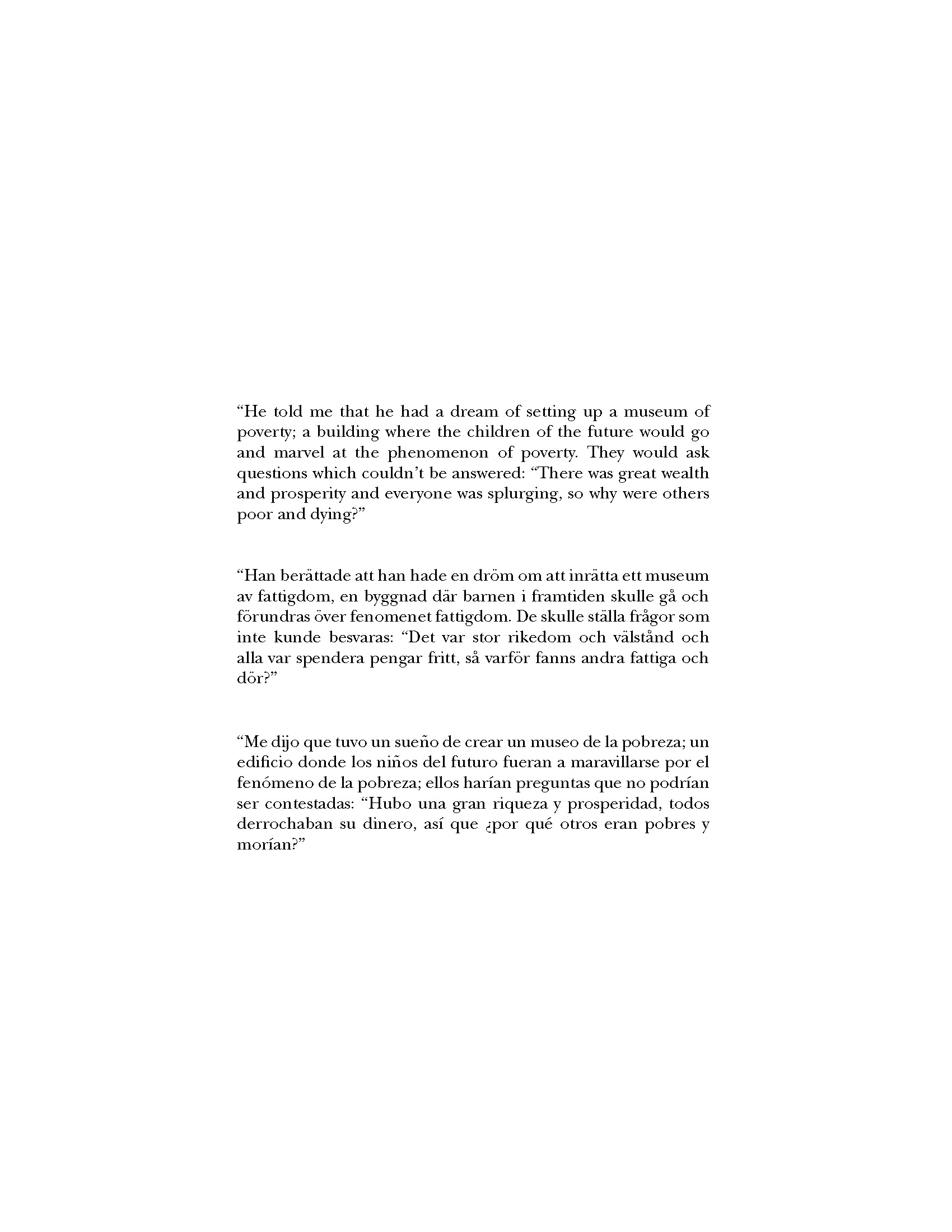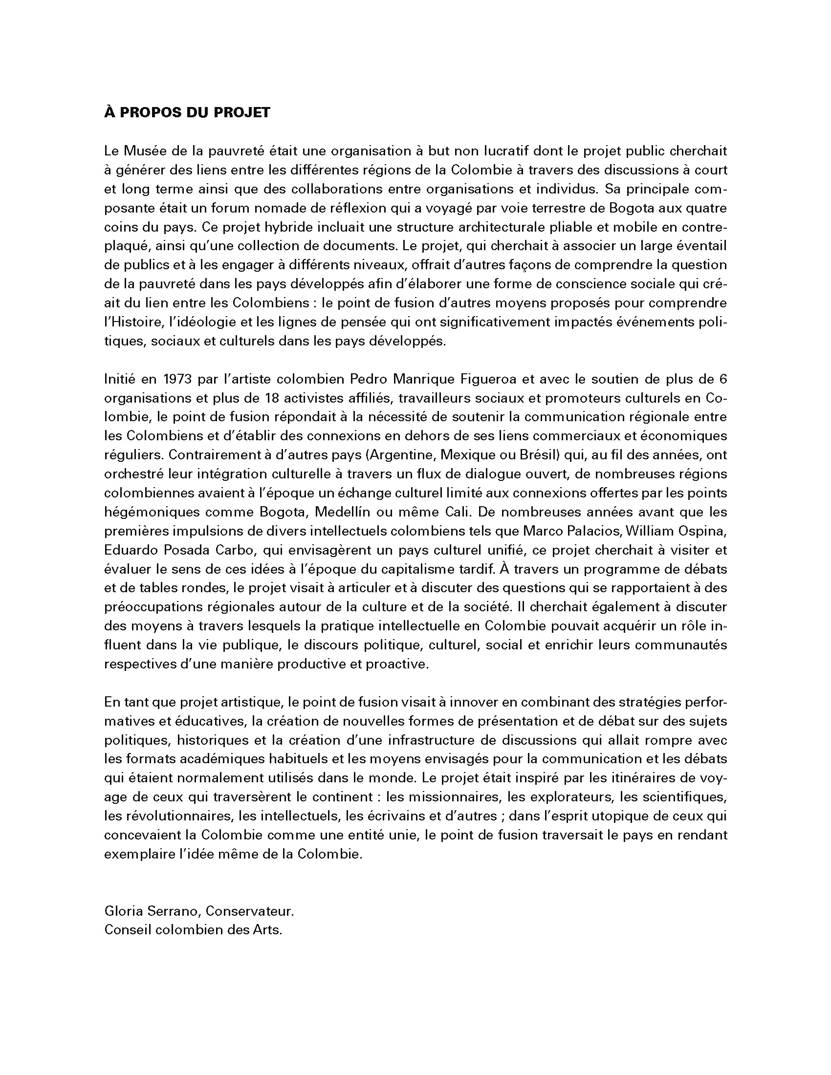 From February 21 to May 15, 2016, Trust In Fiction, a group exhibition with Eleanora Antinova, The Atlas Group, Jack Blevins, Collection Yoon Ja & Paul Devautour, Marcelo do Campo & Marcelo Cidade, René García Atuq, Pedro Manrique Figueroa, Joaquim Nunes de Souza, Naranja M. Q. & Clara S. & Helena L. & Javi L. & le Mendiant, Euclides Terra, Juan Trepadori, and works by Luis Camnitzer, José Guillermo Castillo, Liliana Porter, Luis Ospina, curated by Santiago García Navarro & Elfi Turpin.