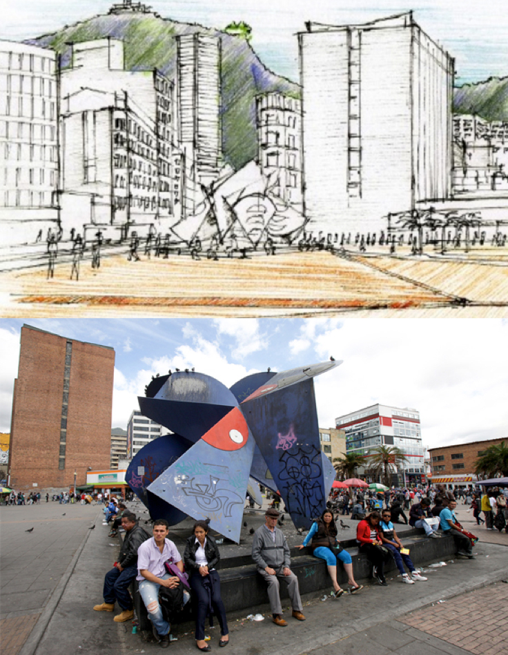 Paralela a esta mirada informada que se deleita en ponerle nombres a la puesta en abismo, hay una patafísica criolla: la exposición parece digna de una antología de desvaríos arquitectónicos, por ejemplo, de esas secuencias de fotos difundidas por redes sociales donde se ven escaleras que no llevan a ningún lado o que rematan en muros infranqueables, de puertas que abren al vacío, de instalaciones sanitarias mal puestas y todo un vademécum de albañilería delirante donde los espacios paradójicos propuestos por artistas como Piranesi, Escher, Richard Serra, Dan Graham o Jorge Machi encuentran una distorsión bizarra. Esta muestra de distopía popular de arquitectura tiene su eco en proyectos grandilocuentes donde la visión del arquitecto, como artista ilustrado del espacio público, pasa del planeado render al predecible horrender y la inclusión del componente arte no da el resultado esperado. Un ejemplo de este tipo de chambonería magistral puede ser Mariposa, la escultura de Edgar Negret en la plaza de San Victorino de Bogotá, una pieza que, a pesar de ser limpiada y repintada una y otra vez, alcaldía tras alcaldía, para lucirla como un bien cultural de contemplación patrimonial, retorna siempre a otros usos, determinados, sobre todo, por las carencias urbanísticas del lugar donde está expuesta: rodadero infantil, pasarela para prostitutas, percha para palomas, baño, techo.