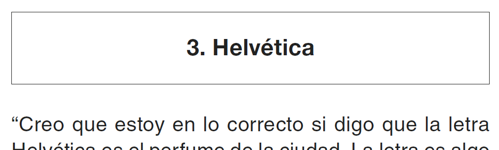 “Creo que estoy en lo correcto si digo que la letra Helvética es el perfume de la ciudad. La letra es algo que usualmente no notamos, pero que extrañaríamos mucho si no estuviera ahí”, dice Lars Miller en el documental Helvética (2007), de Gary Hustwit, una película que alterna la opinión de varios diseñadores con imágenes de la pandemia gráfica que desató esta fuente suiza desarrollada en 1957.