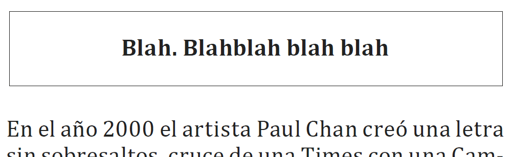 En el año 2000 el artista Paul Chan creó una letra sin sobresaltos, cruce de una Times con una Cambria, que tiene un atributo único: convertir todas las palabras de un texto en un balbuceo monótono que repite una sola expresión: “Blah”. La fuente de Chan muestra la fisura entre lo que se dice y lo que se hace y fue bautizada en clave de escepticismo por este autor de origen hongkonés: