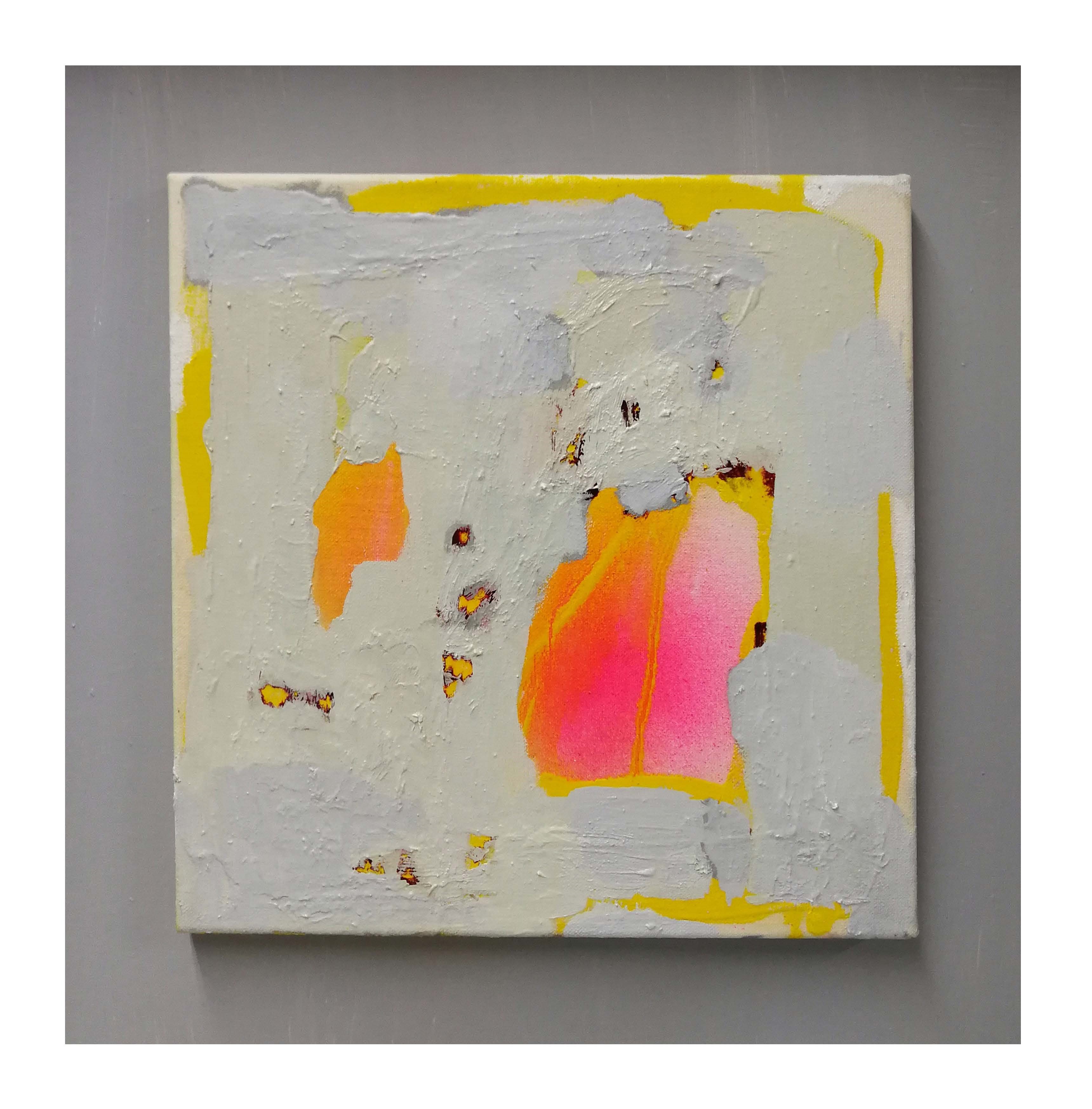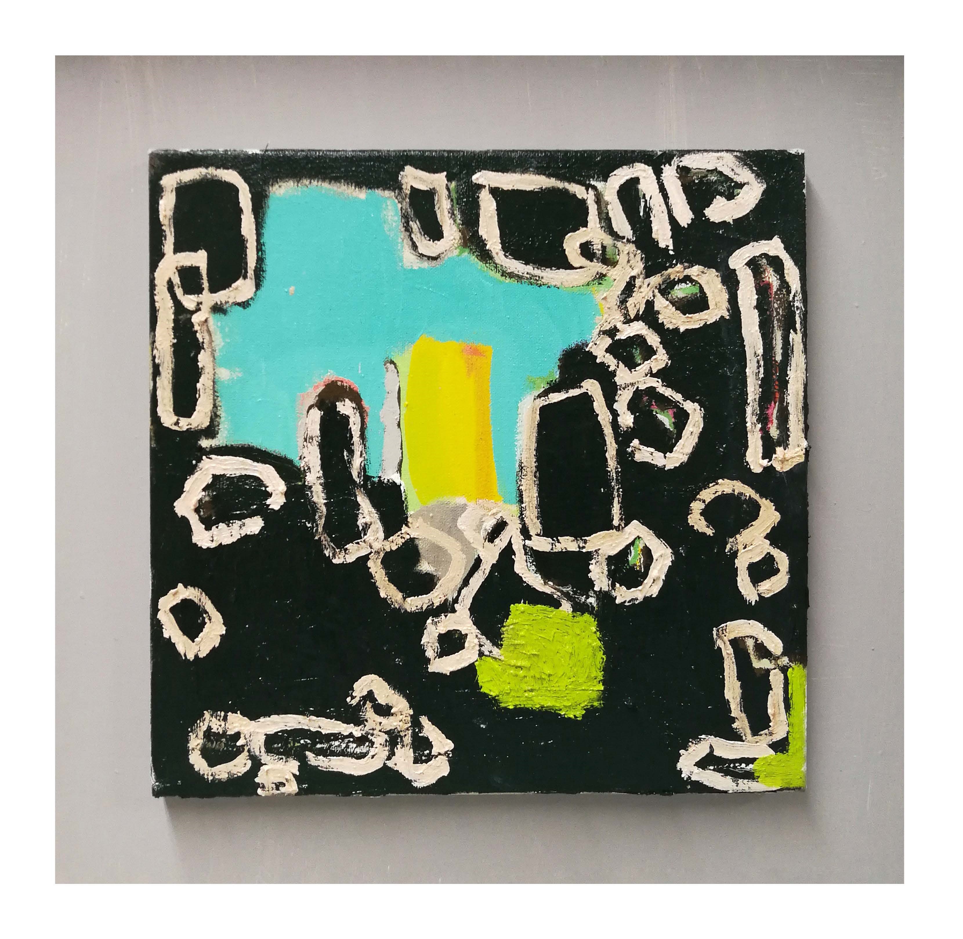 ¿Pero sí será que son abstractas? ¿Será que hay un proceso de mediación intelectual, que sintetiza las formas, se elimina los detalles, o aísla conceptualmente las esencias nouménicas? Tal vez no, al examen resultan más bien concretas, son lo que son, manchas de colores, que a veces ni alcanzan a volverse forma. Entonces tampoco es del todo cierto que no den pistas, sino que no son pistas sobre algo distinto, sobre algo que pase afuera de ellas. Es pintura indéxica y autorreferencial. O sea, vemos las capas, los tiempos, la pincelada, el grumo, la gota, donde puso la manchita. Luego vemos cómo el artista rellenó tiempo después un espaciecito con otro color que nada que ver, y luego tapó todo, no, casi todo, con otro color. Todas esas cosas de las que es mejor no hablar.