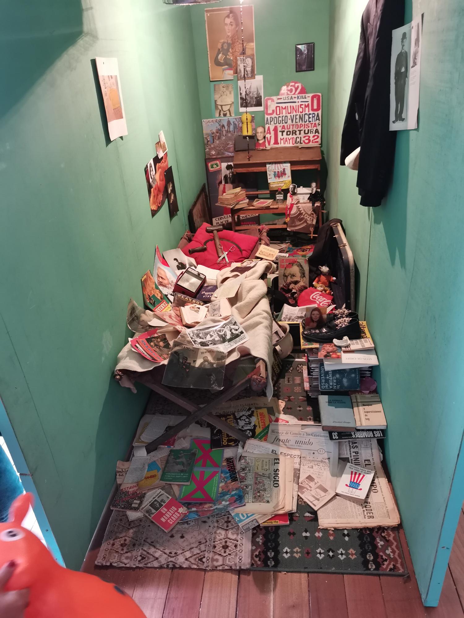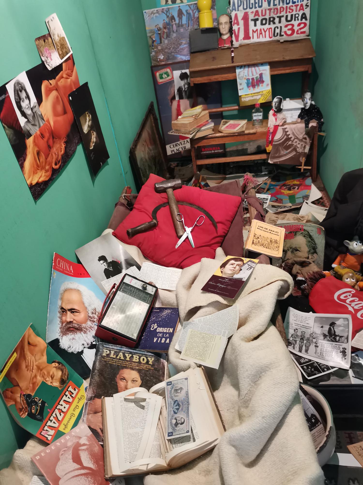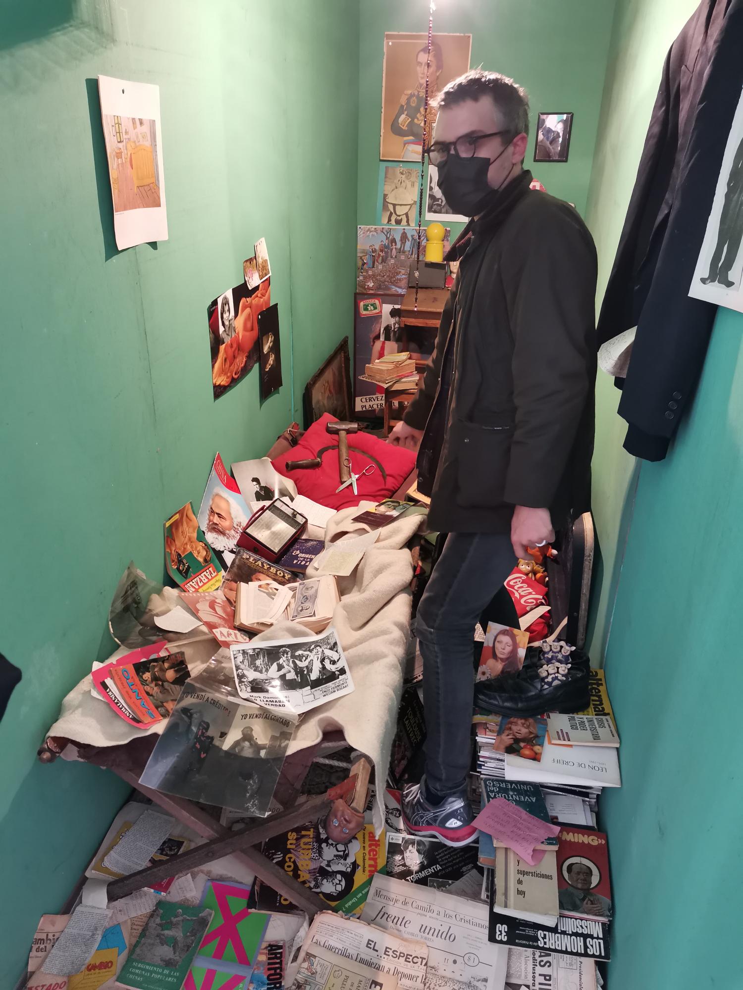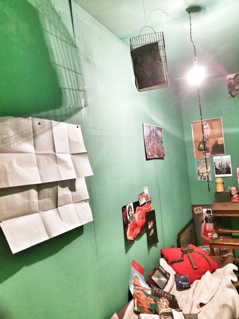La pieza permite un acercamiento, desde un agujero ubicado en la pared, con algunos de los objetos más íntimos del artista con los que se recrea la habitación que ocupó en 1973 en el Hotel Dorantes, ubicado en el centro de Bogotá. El público como observador, desde un punto fijo, se aproxima a la intimidad de Pedro Manrique Figueroa y percibe una serie de elementos que describen la personalidad de una de las figuras más notables del arte en Colombia. Además de la instalación, esta versión está acompañada por tres collages del artista, que están ubicados alrededor de la pared.