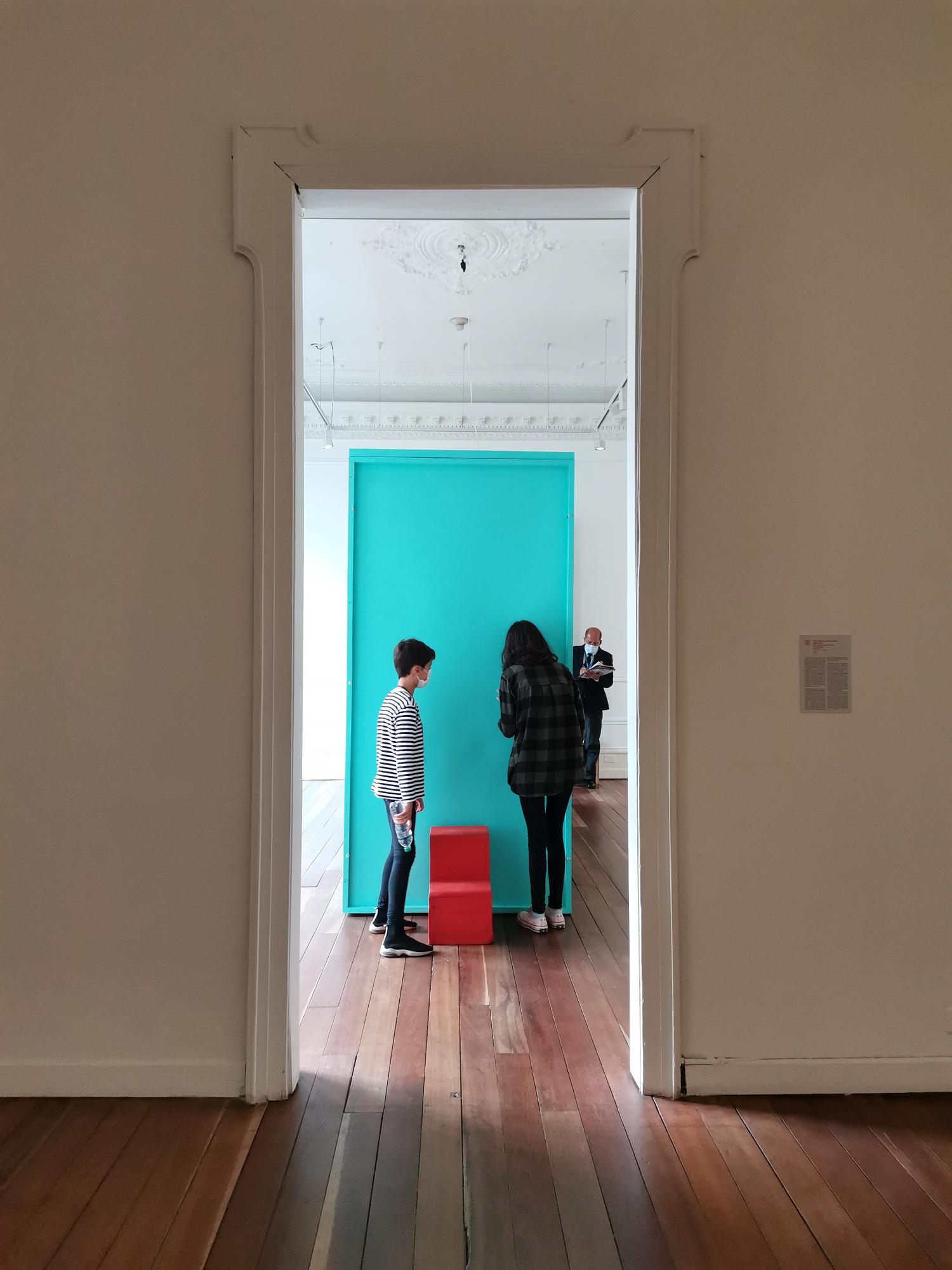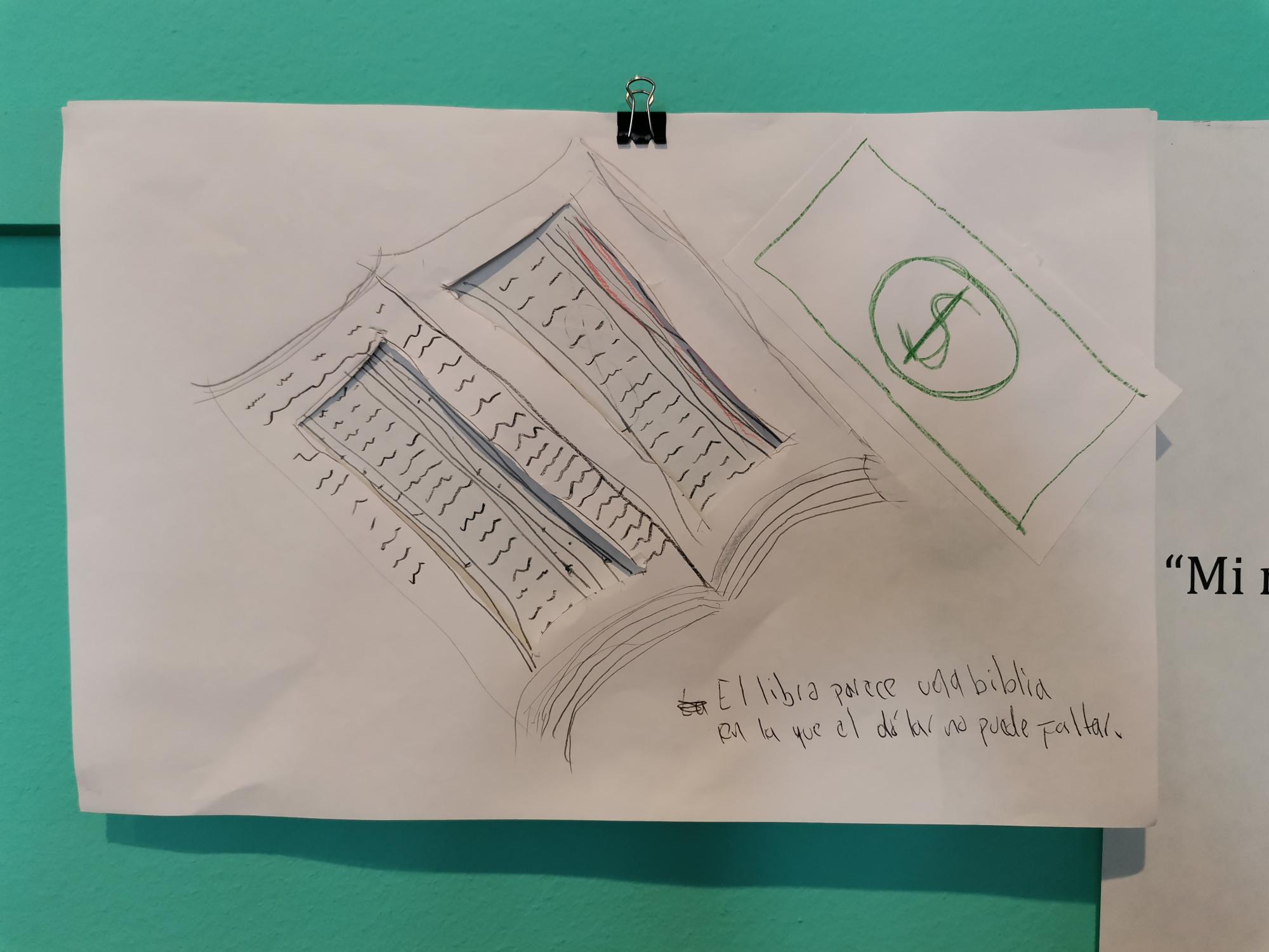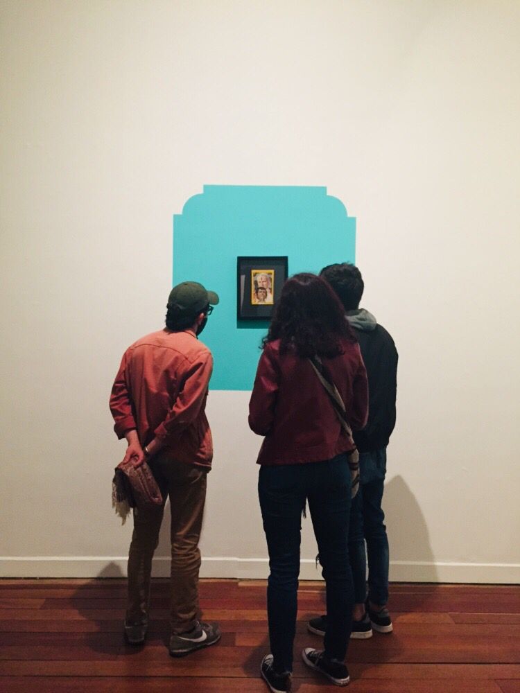 Filosofía es una pieza que hace parte del tercer eje de la exposición Ires y venires, denominado Umbrales, que hace referencia a los lugares intermedios, lugares de paso, límites entre lo consiente y lo inconsciente. En esta pieza, Pedro Manrique Figueroa invita a dar un paso y atravesar el umbral “Nos pide atrevernos, creer, asomarnos, acomodar la vista y entender que observar nos hace partícipes del espacio más íntimo de ese personaje” (Catálogo Ires y venires. P, 105).