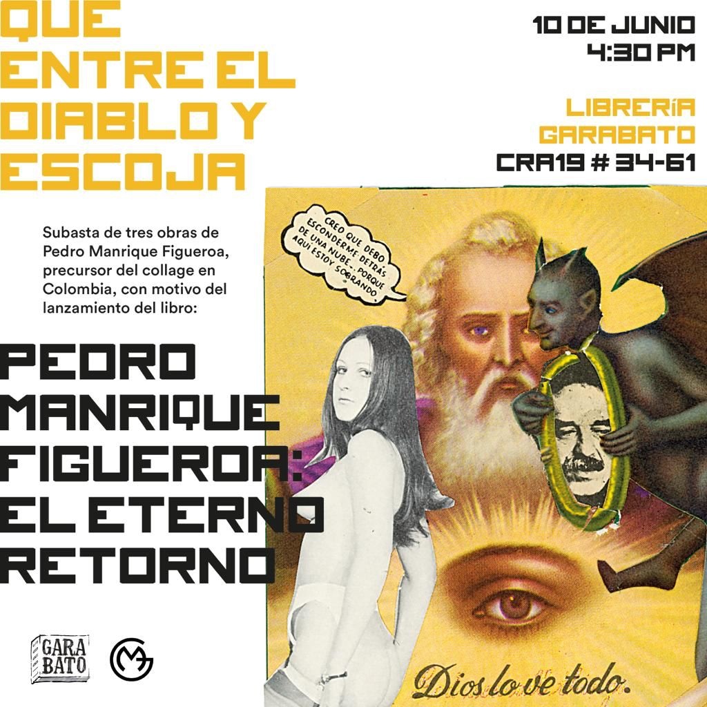 «$ 66.666 pesos, ¿quién da más?» Se espera que mañana suba la inflación en Colombia por venta de arte: a partir de un precio base de $666 pesos, tres obras de Pedro Manrique Figueroa, Precursor del Collage en Colombia, alcanzan precios al alza en subasta: $50.000 por el primer collage, $70.000 por el segundo y $150.000 por el tercero. El dinero es el estiércol del demonio. Que entre el diablo y escoja. Solo el necio confunde valor y precio. La diabólica suaré de agiotismo cultural fue producto de Gráficas Molinari con la elegancia en el servicio de una leyenda de los meseros en Colombia: el Señor Peña.»