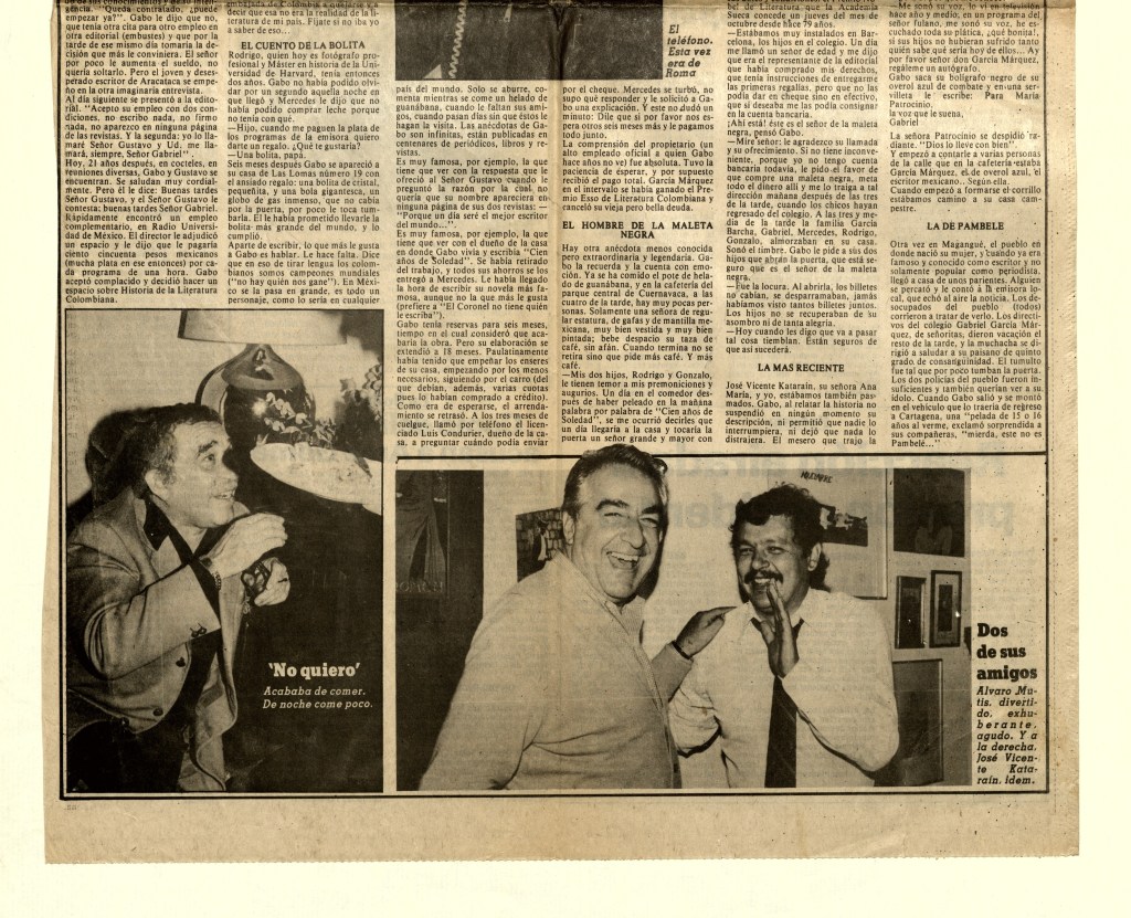 «Haciendo uso de su talento para la imitación llamó a la casa del Nobel en Cartagena, entonó la estridente voz del presidente Cesar Gaviria y haciéndose pasar por él, pidió hablar con Gabo. Allí, le explicó que los diálogos de paz necesitaban de su ayuda urgentemente por lo que necesitaba que se reuniera tan pronto fuera posible con el presidente de Venezuela, Carlos Andrés Pérez, para que los esfuerzos de paz no se esfumaran.