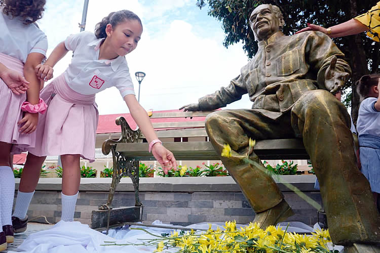 Acto seguido, la presentadora, con el tono gélido de la oficialidad que marcó todo el evento, invitó a los asistentes de mayor rango a pasar a la mesa principal, junto al «señor presidente», para «hacer la foto oficial junto a la estatua de cera de Gabriel García Márquez».