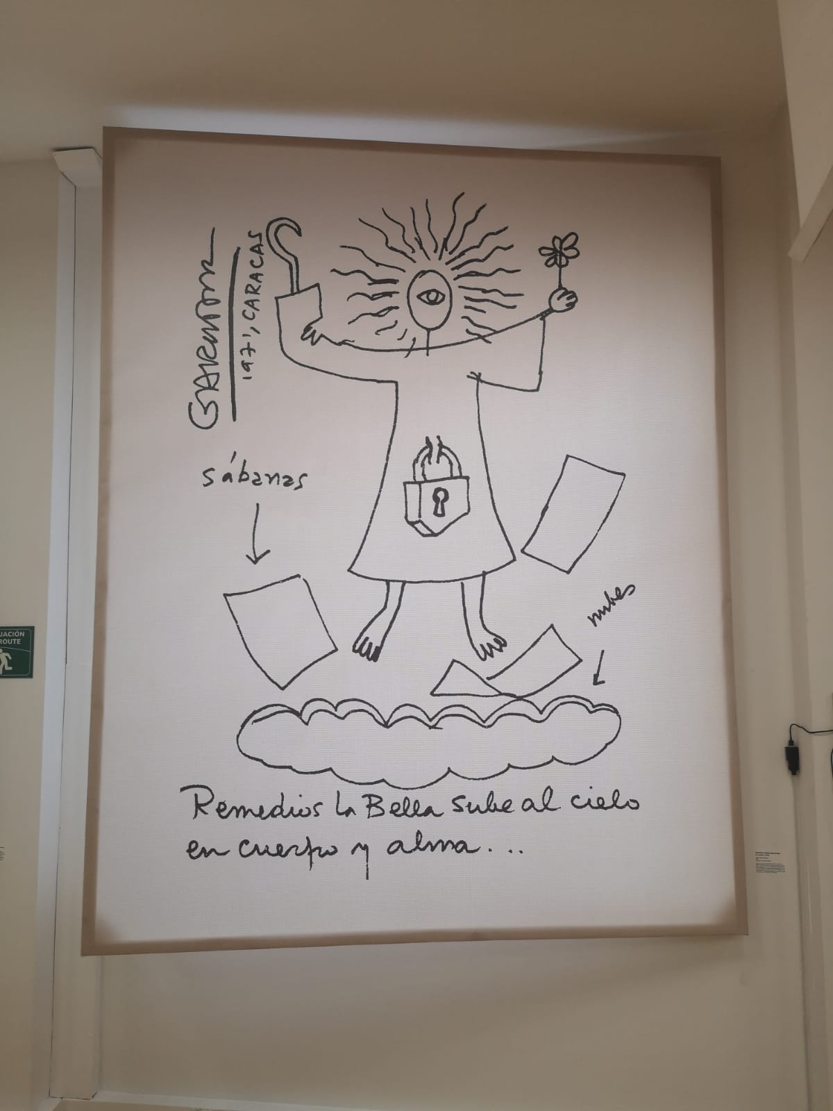 El dibujo de Remedios la Bella destaca en la exposición en una gran ampliación y por su soledad. Tal vez haya más dibujos de García Márquez de otros periodos, que siguen guardados o que fueron botados al ser considerados como garabatos y mamarrachos de escritor y que hoy sólo tienen un valor anecdótico, como el que les da, en parte, la curaduría de la exposición, y que quizá sean apreciados por una casa de subastas acuciosa de capitalizar el fetiche.