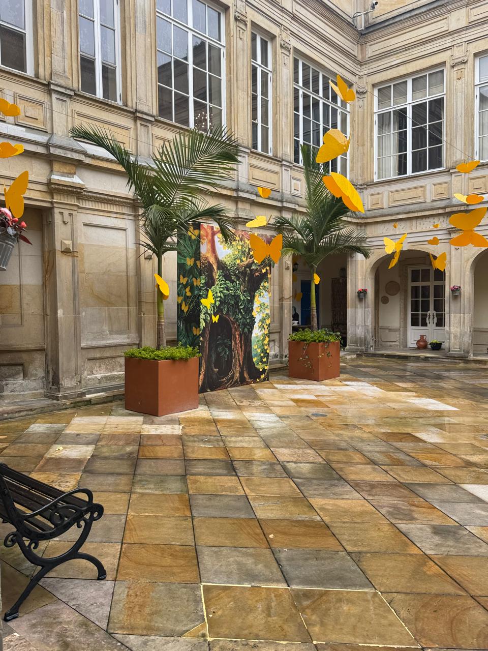 Por otro lado, la exposición Gabo vive en la Casa de Nariño —presentada en los salones, corredores y patios del Palacio Presidencial— resulta en una curaduría superficial, torpe y escolar. Patriótica y tosca, esta exposición fatiga el cliché con una colección de objetos que remedan piezas museales, dispuestos sin mayor contexto, apenas adornados con mariposas amarillas producto de un ejercicio secretarial de «pintumanitas» y unas cuantas artesanías como música de fondo. Se expone sin pudor una estructura en cartón impreso, reciclada del material promocional del lanzamiento de la serie Cien años de soledad de Netflix, que refuerza la sensación de estar ante una tienda de souvenirs de «Macondo» más que ante una verdadera exposición. Una serie de pinturas y posados retratos le dan un aire religioso a la muestra, una solemnidad impostada de cultura, una labor propia de decoración de interiores ante que resulta en un producto de propaganda: arte al servicio de la ideología.
