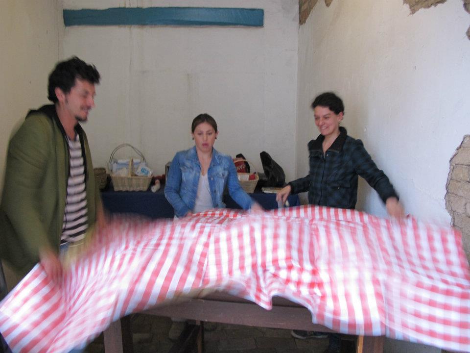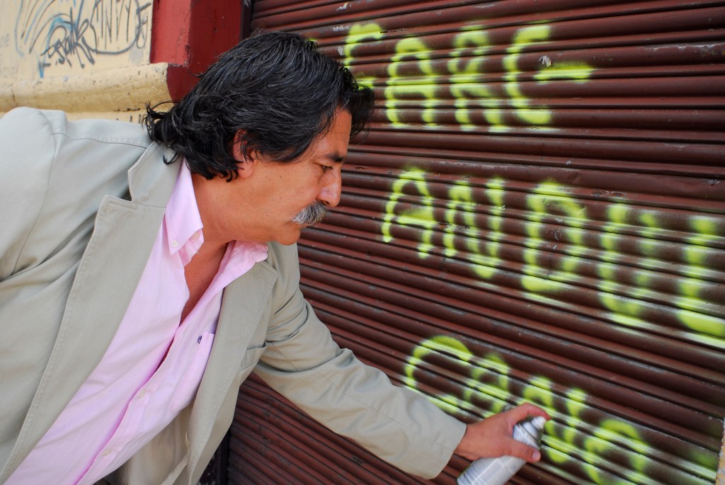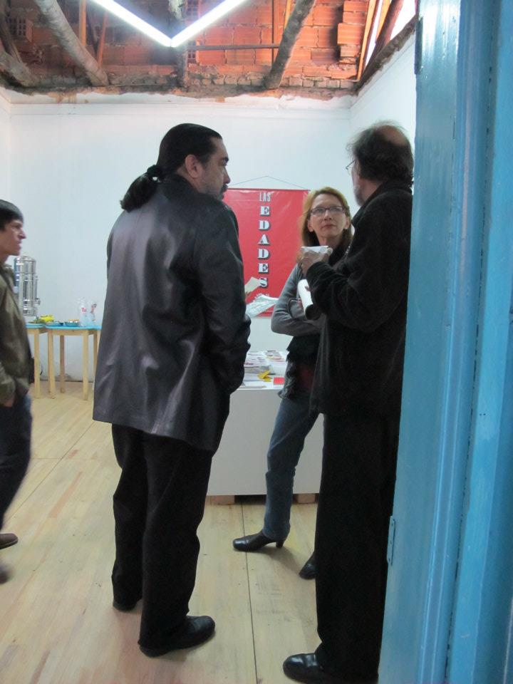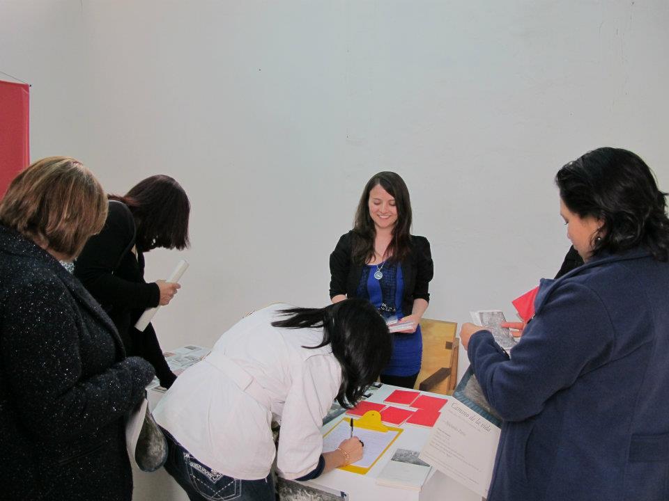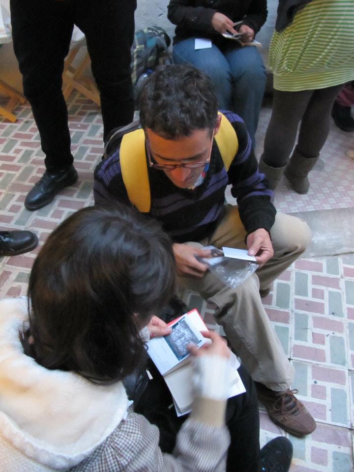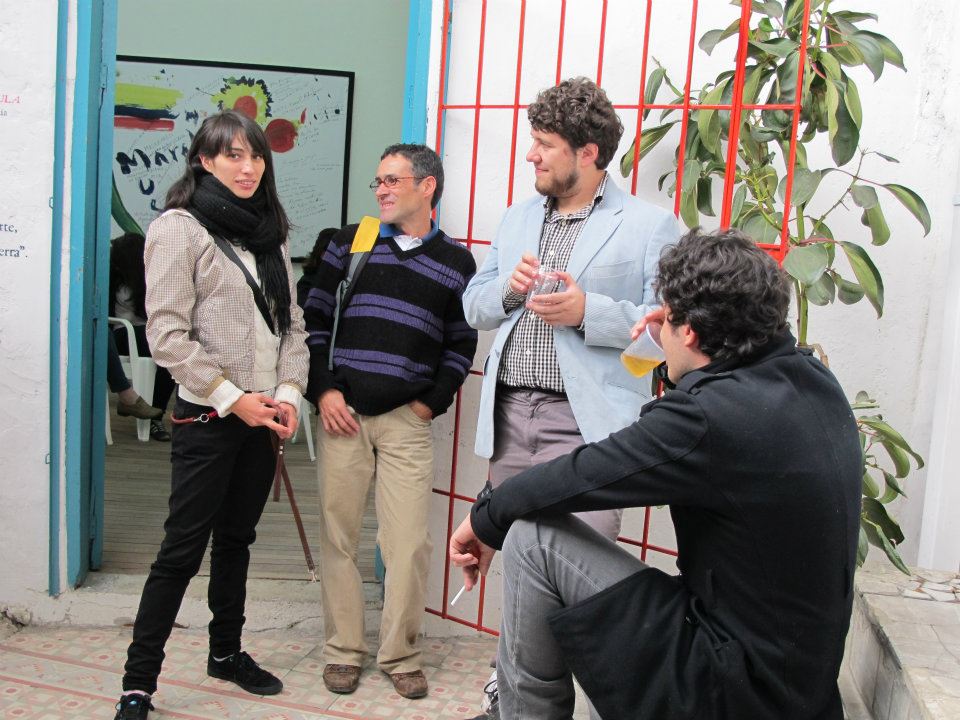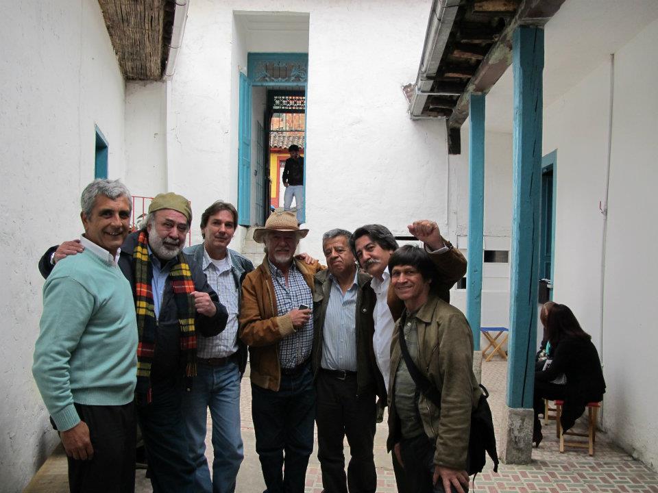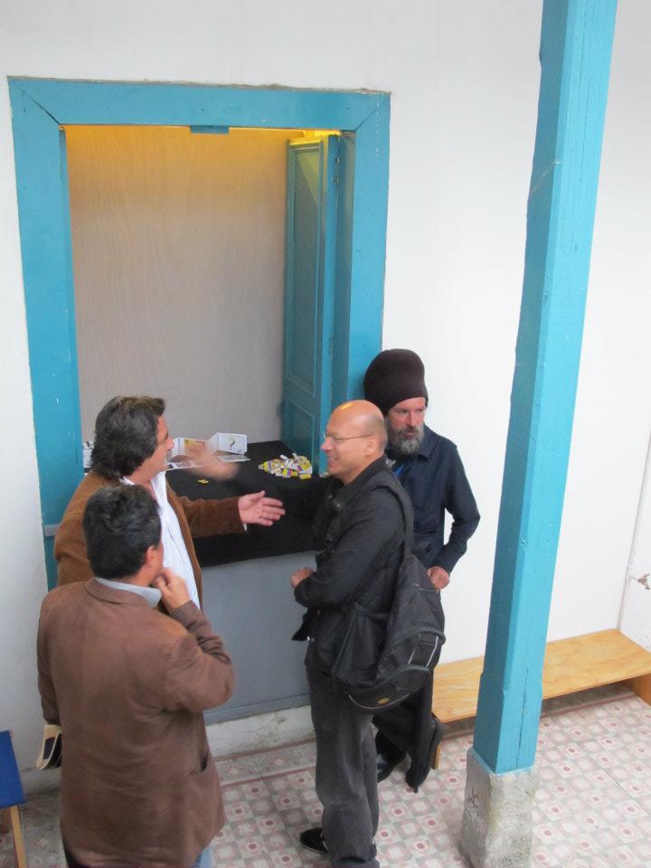 Dos salas donde predominan las sillas de plástico baratas, los colores de la bandera colombiana y la imagen del artista David Manzur (en el plotter de un cartón que pintó, en ocho fotografías, en video). Un proyecto de Iván Cano Mejía, que decidió asistir en agosto de 2000 como representante de una organización de artistas a las mesas de diálogo convocadas durante las negociaciones de San Vicente del Caguán. Llegó, habló con la guerrillera encargada de organizar el capítulo de cultura. Le dijo que había llevado una actividad. Ella lo escuchó y aceptó: cada humano sentado en la mesa principal recibiría 1/4 de papel y vinilos amarillo, azul, rojo. No debían preocuparse por los pinceles; de lo que sí, era de saber qué hacer con lo que les habían dado.