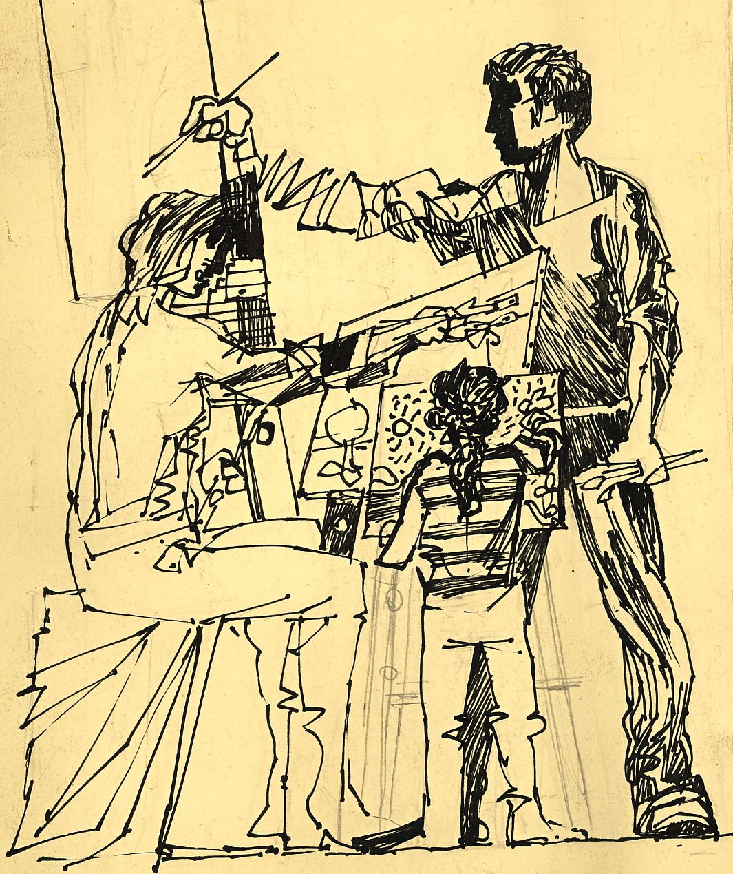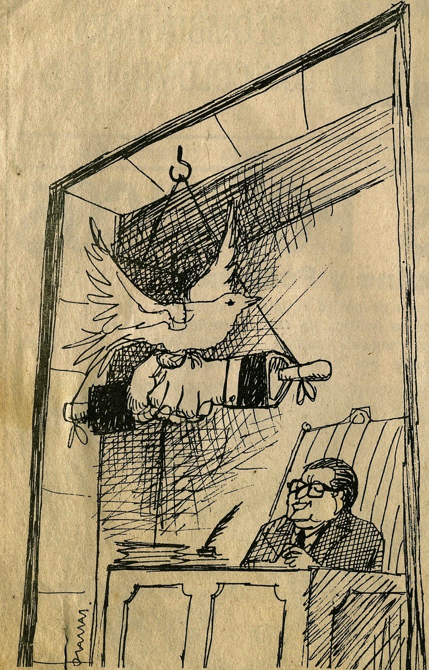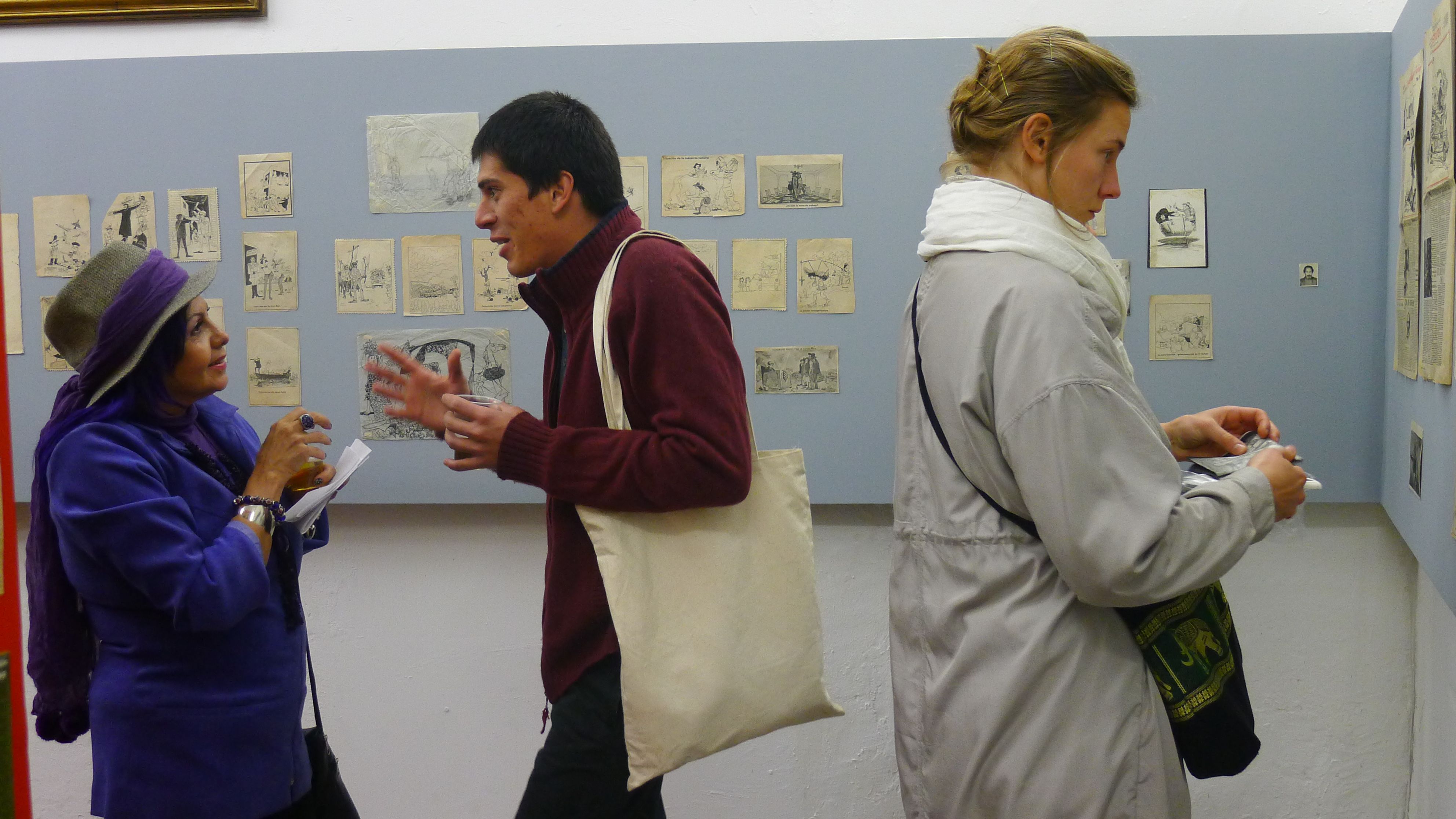 Las caricaturas de la exposición –publicadas en El Periódico, Voz Proletaria y Telemundo– muestran una línea diestra aunque es difícil juzgar su agudeza o sentido del humor, son comentarios a hechos demasiado lejanos. En cambio los bocetos juguetones y sin propósito se ven aún vivos, son las flores del durazno ignoradas por pájaros y abejas, que nunca se transformaron en otra cosa y que, quizás por eso, mantienen su frescura.