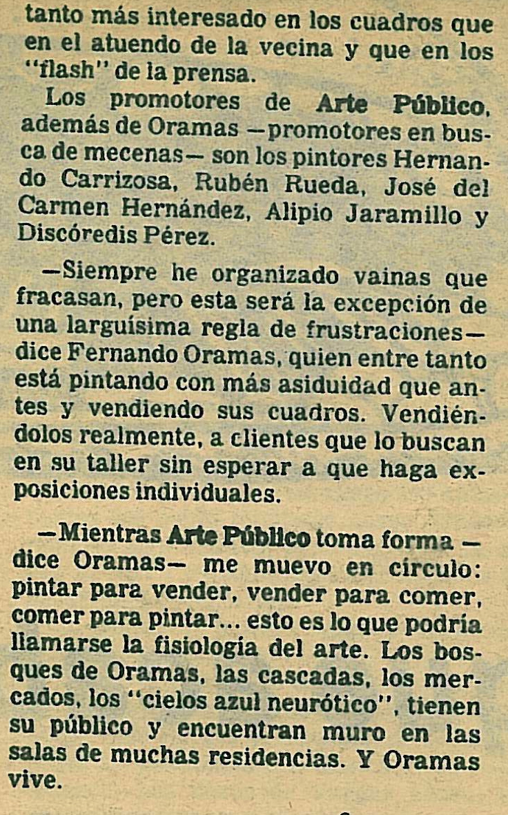 También está su paso por los periódicos de la época, con perfiles en El Pueblo de Cali (1978), en las Lecturas Dominicales de El Tiempo (en 1979), en La Prensa (en 1988), donde se habla invariablemente de su sentido del humor (Antonio Cruz Cárdenas habla del “benévolo humor suyo un poco triste”), de cuánto le gusta fumar marihuana, de sus opiniones frente a los temas del día, de su irreverencia.