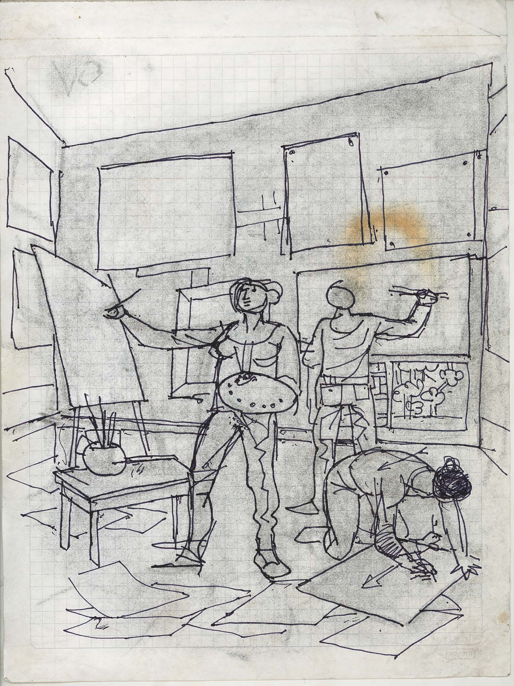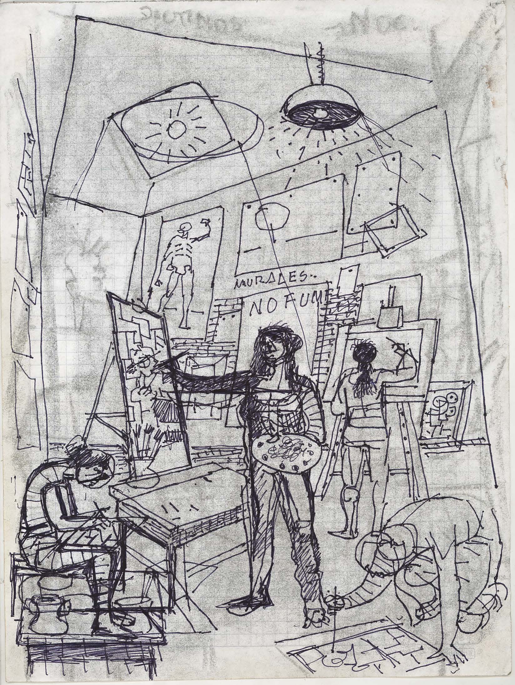 Podemos ver lo que pintaba y dibujaba, claro, aunque también hay ejemplos más mundanos de su paso por este planeta. Hay una fórmula médica que ordena tersamente unos exámenes; fotos de alguna fiesta con niños y otra con sus amigos; fotos del maestro cruzado de brazos frente a un cuadro colorido o del pintor en acción, enfrentándose dramáticamente a un lienzo frente a unos cerros orientales oscuros y despelucados, sin domesticar aún.