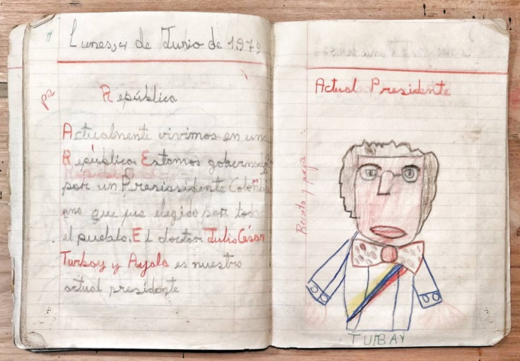 «El Doctor Julio Cesar Turbay y Ayala es nuestro actual presidente» (Cuaderno de tareas, 1979)