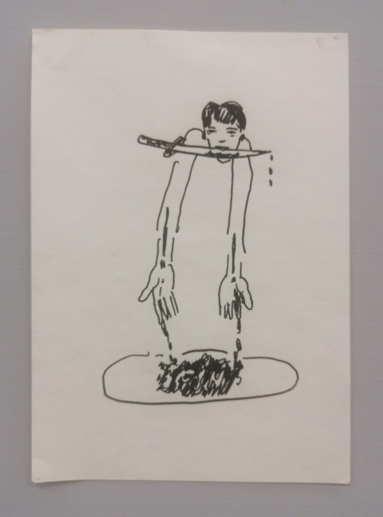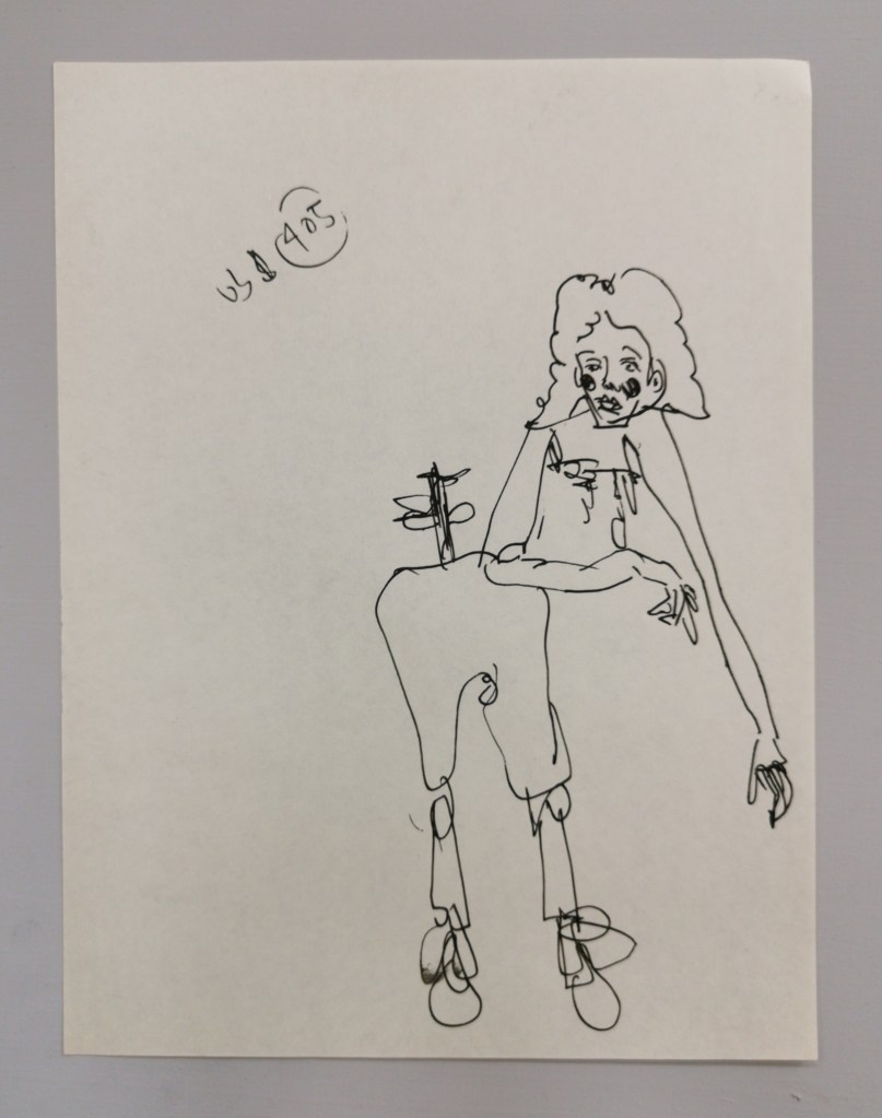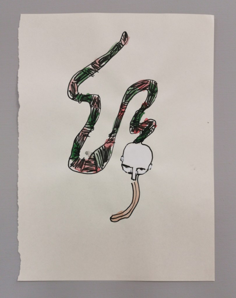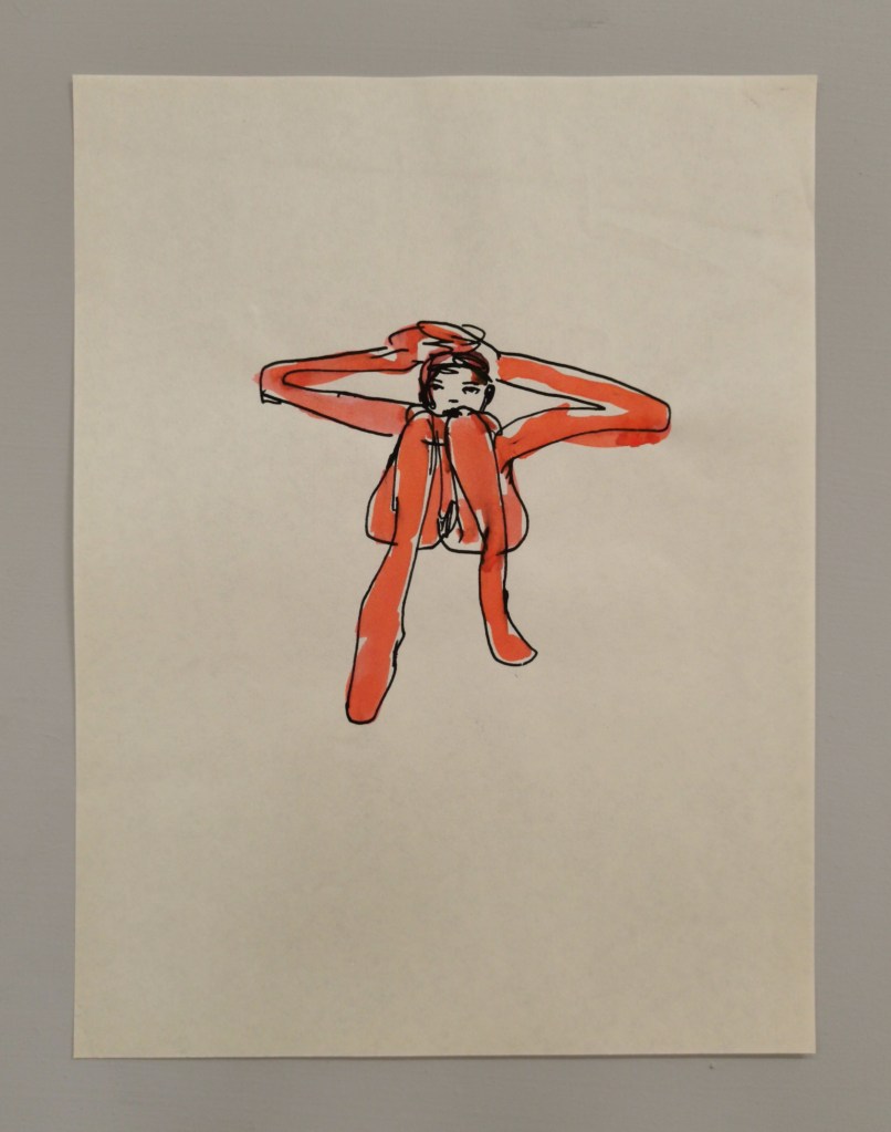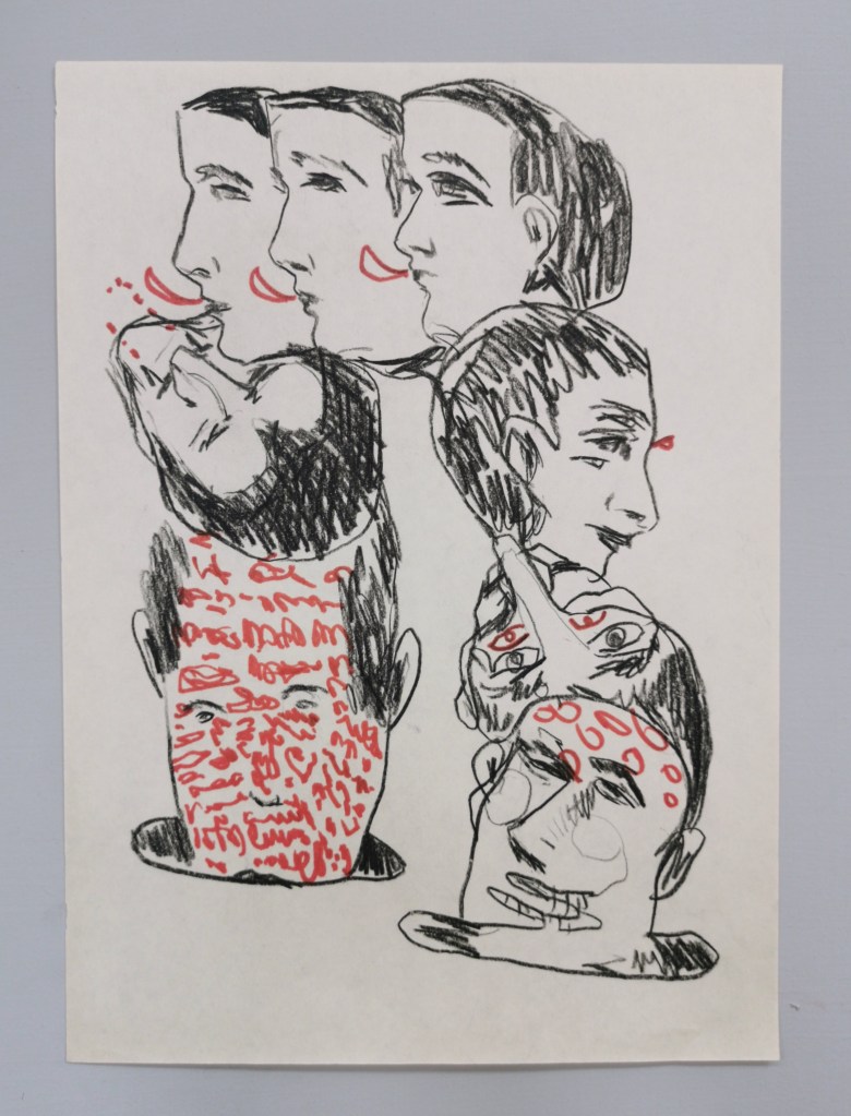 #129 / 21×27 cm, lápiz negro y marcador rojo sobre papel / $300.000
