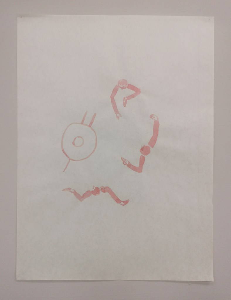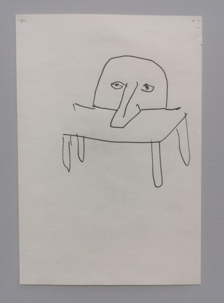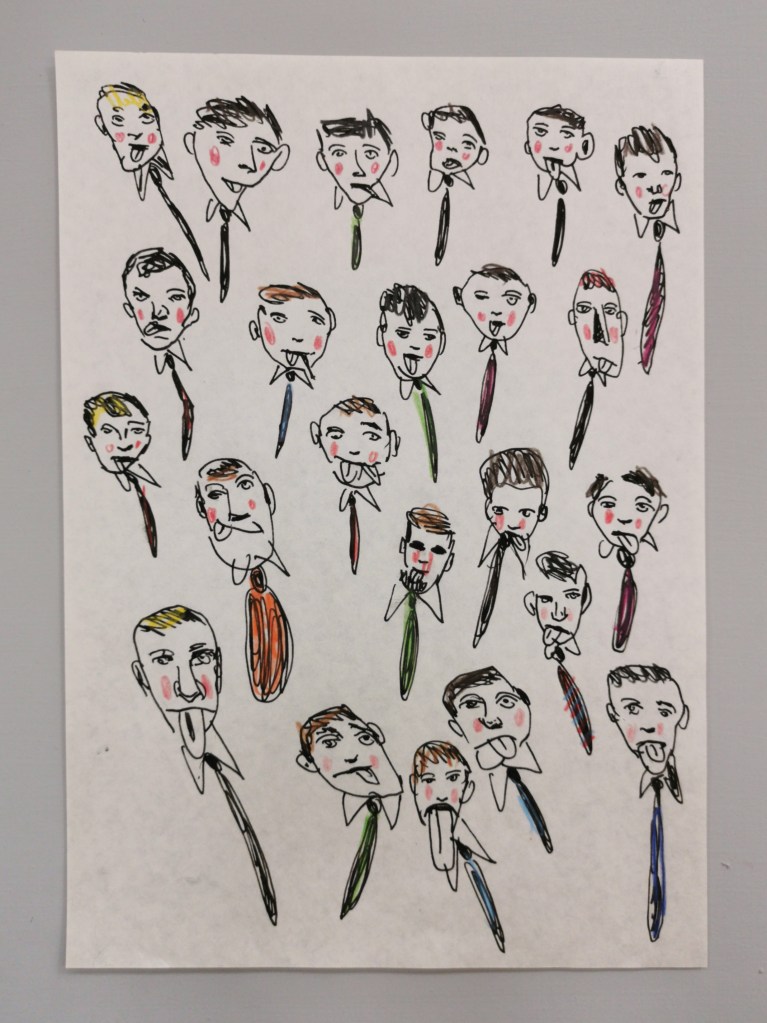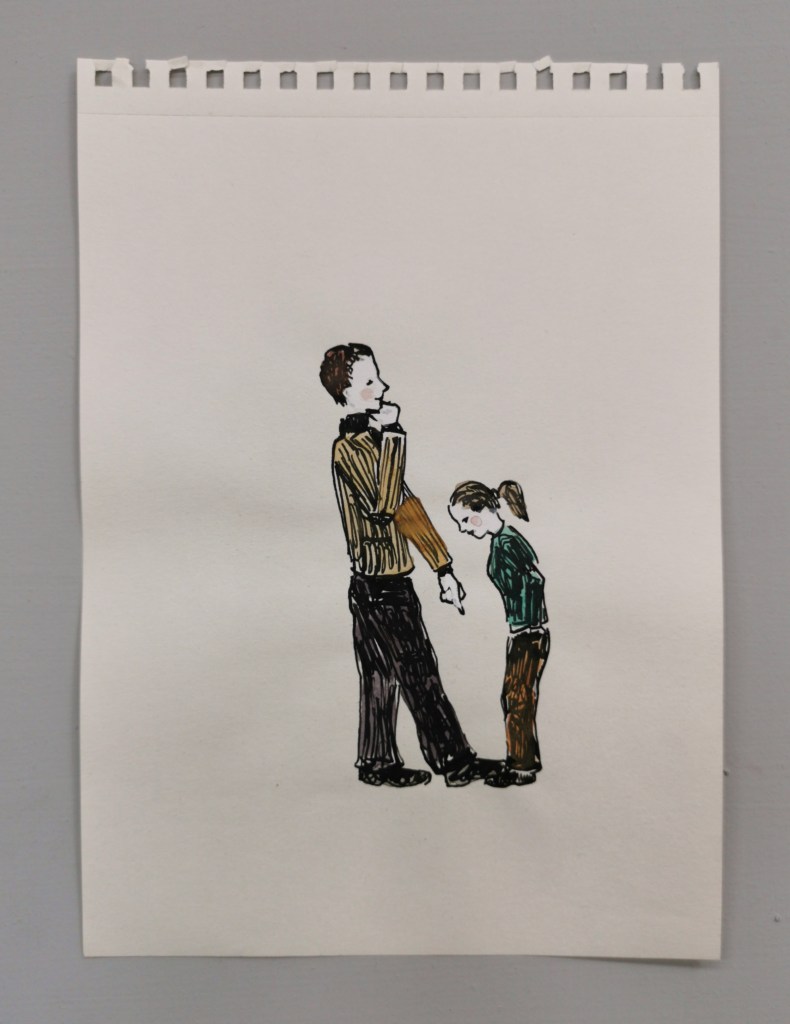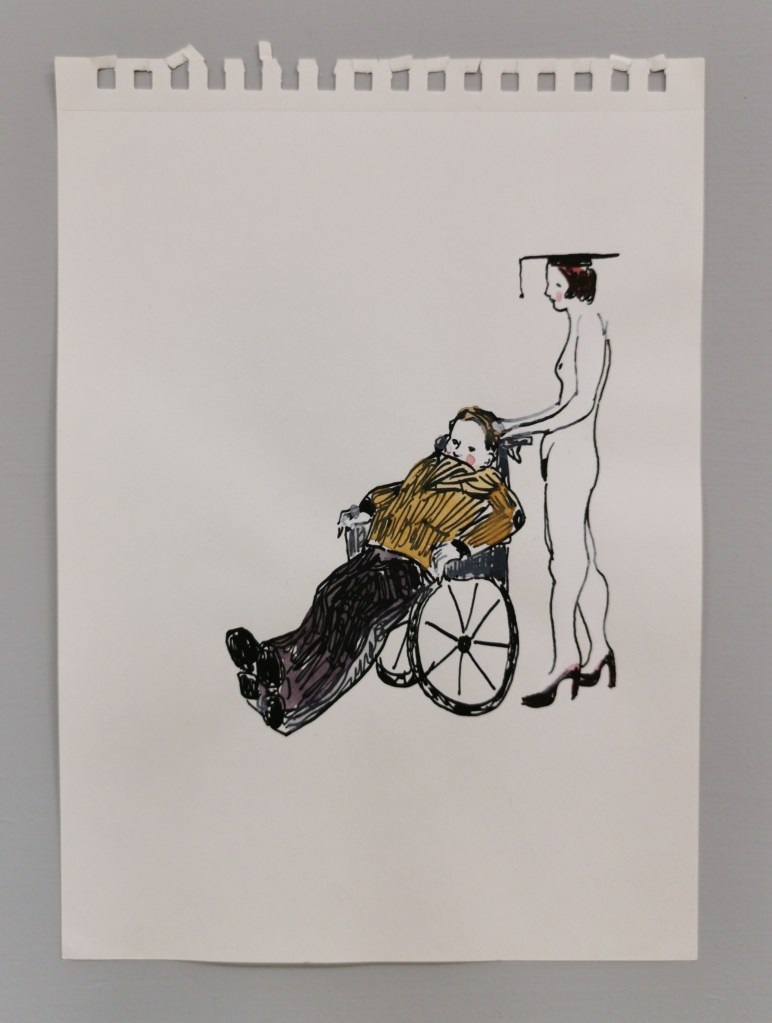 #129 / 21×27 cm, lápiz negro y marcador rojo sobre papel / $300.000