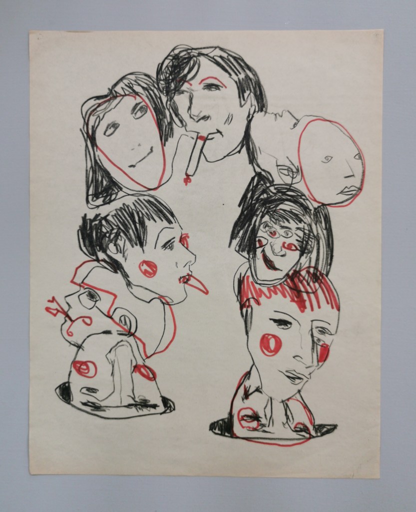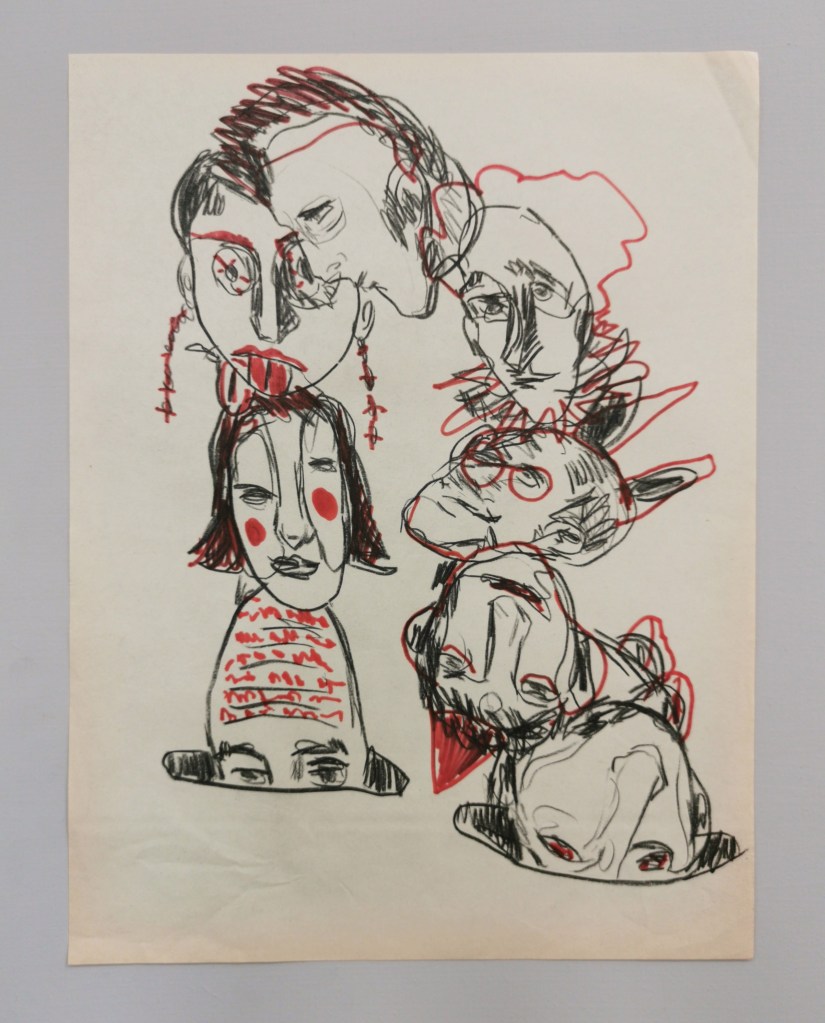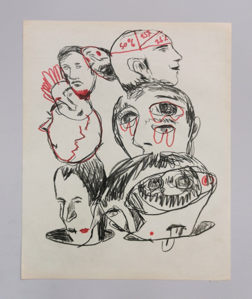 #175 / 21×27 cm, lápiz negro y marcador rojo sobre papel / $300.000